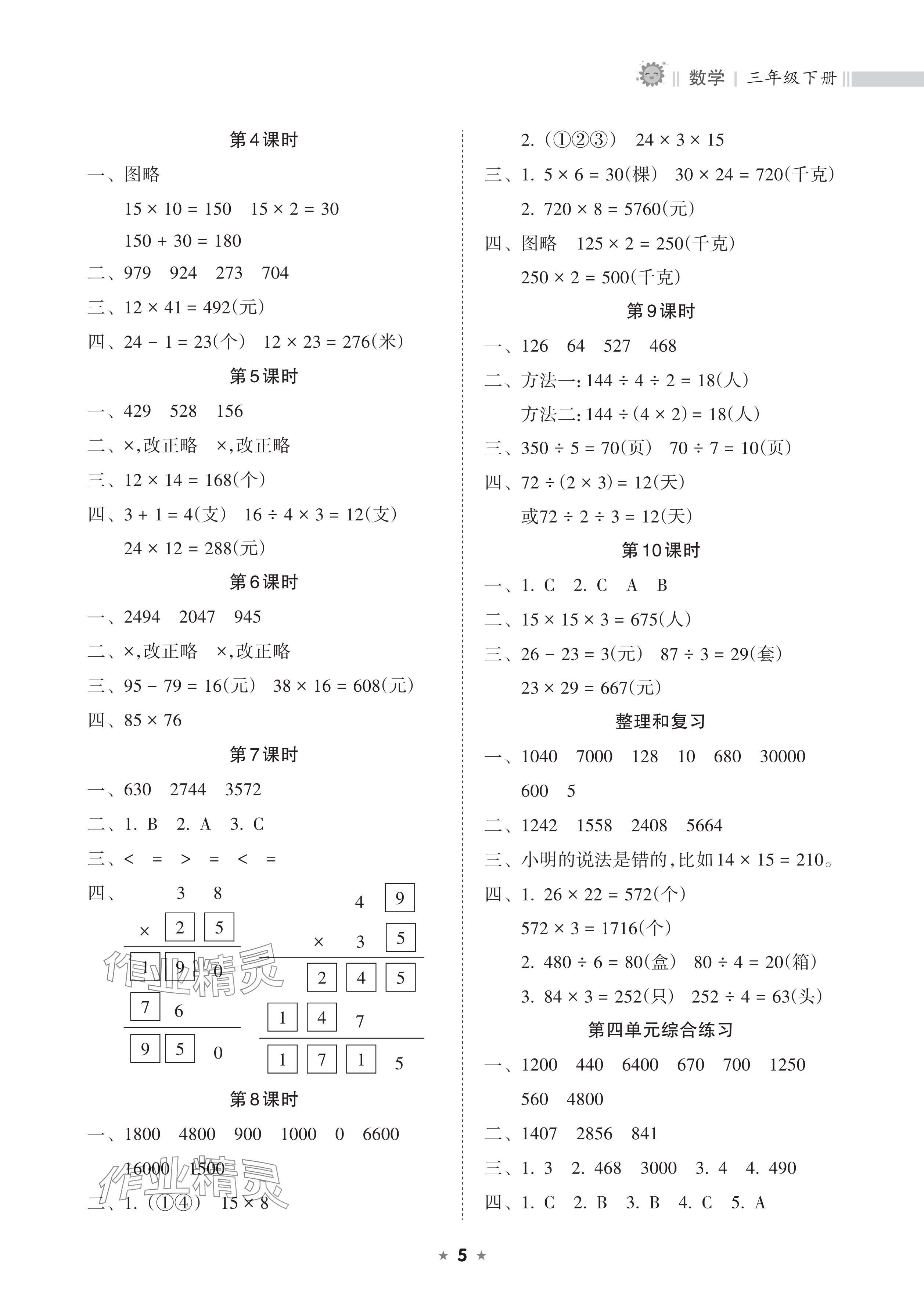注:目前有些书本章节名称可能整理的还不是很完善,但都是按照顺序排列的,请同学们按照顺序仔细查找。练习册 2025年新课程课堂同步练习册三年级数学下册人教版 答案主要是用来给同学们做完题方便对答案用的,请勿直接抄袭。