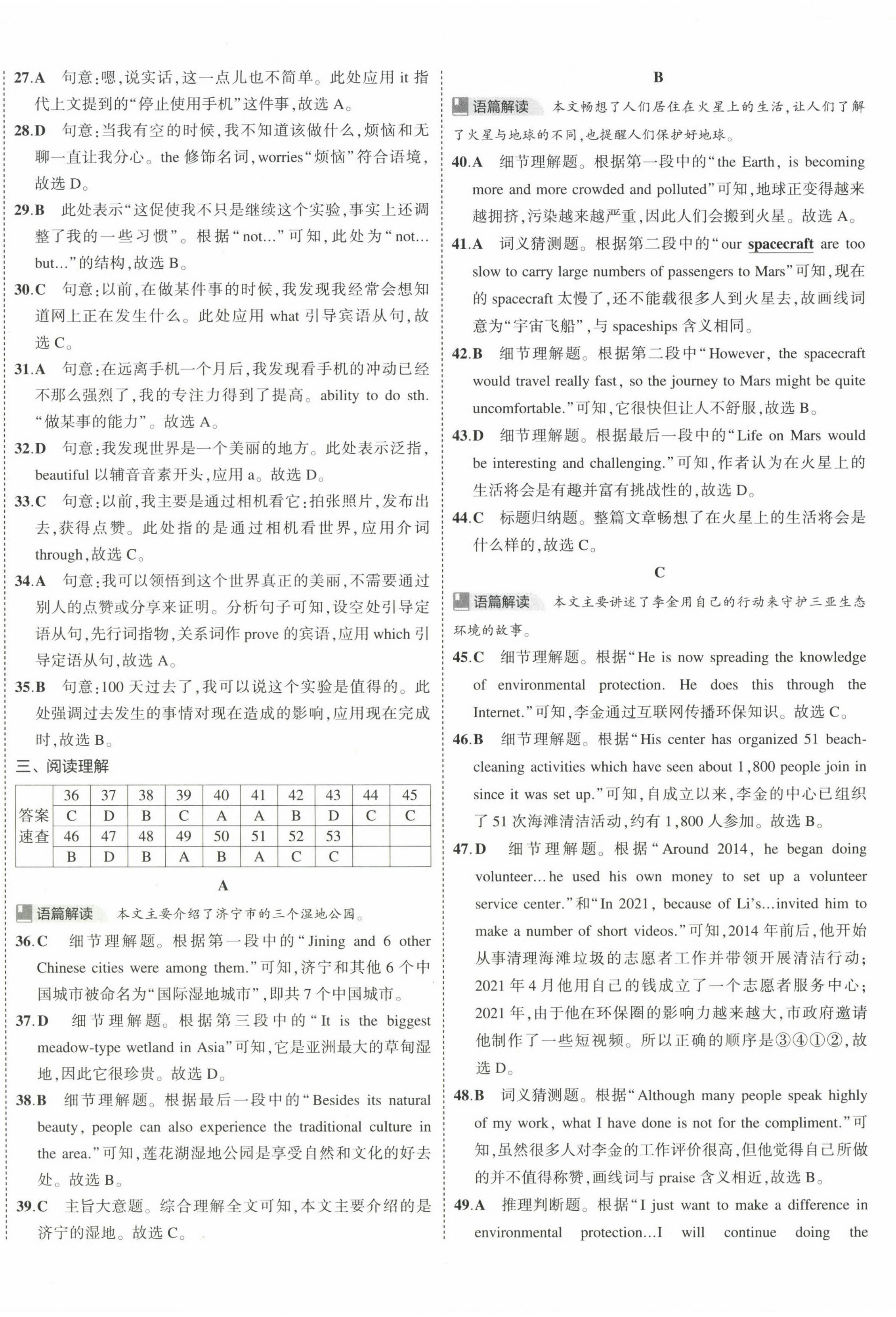 注:目前有些书本章节名称可能整理的还不是很完善,但都是按照顺序排列的,请同学们按照顺序仔细查找。练习册 2025年5年中考3年模拟初中试卷九年级英语下册沪教版 答案主要是用来给同学们做完题方便对答案用的,请勿直接抄袭。