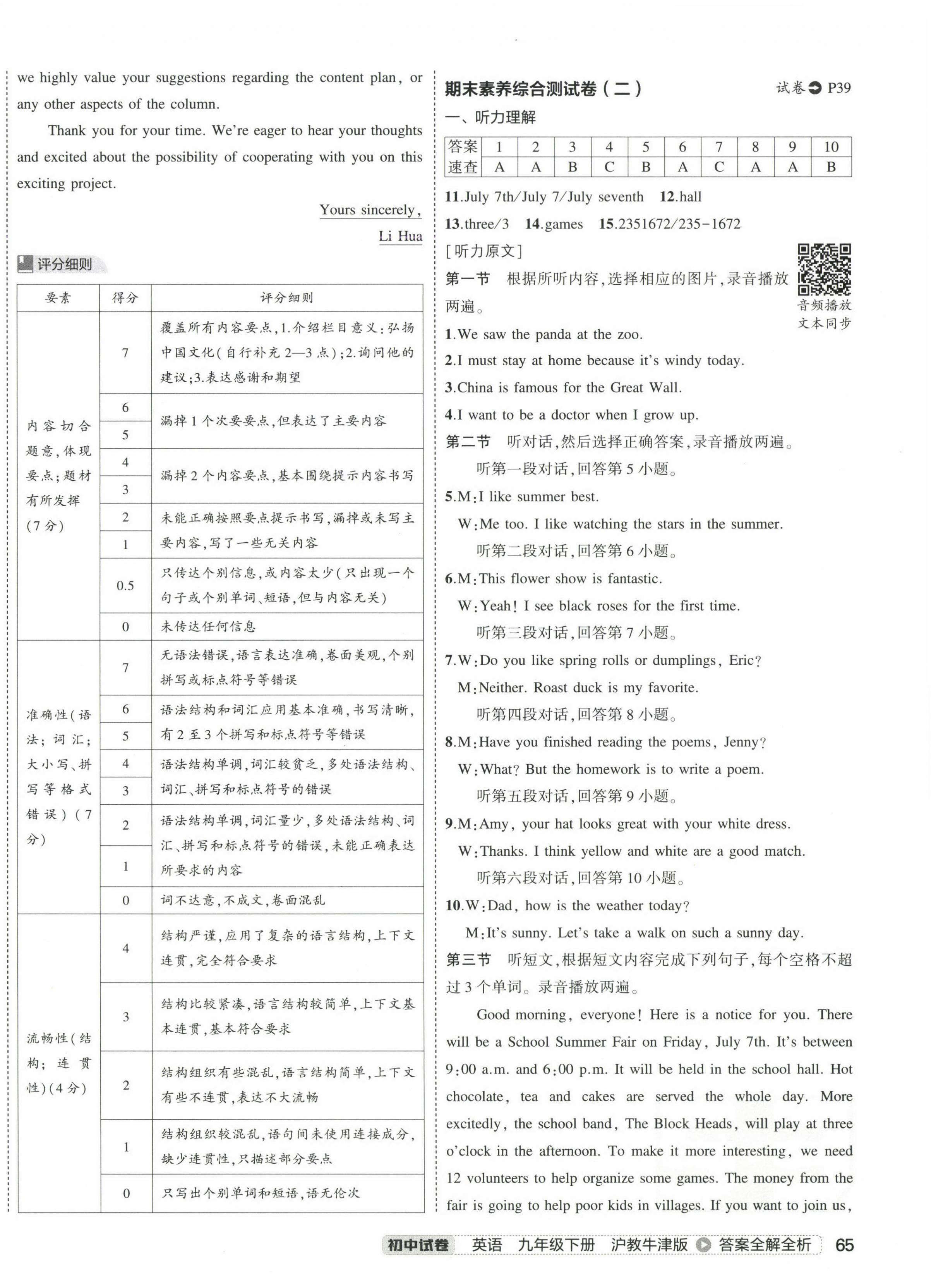 注:目前有些书本章节名称可能整理的还不是很完善,但都是按照顺序排列的,请同学们按照顺序仔细查找。练习册 2025年5年中考3年模拟初中试卷九年级英语下册沪教版 答案主要是用来给同学们做完题方便对答案用的,请勿直接抄袭。