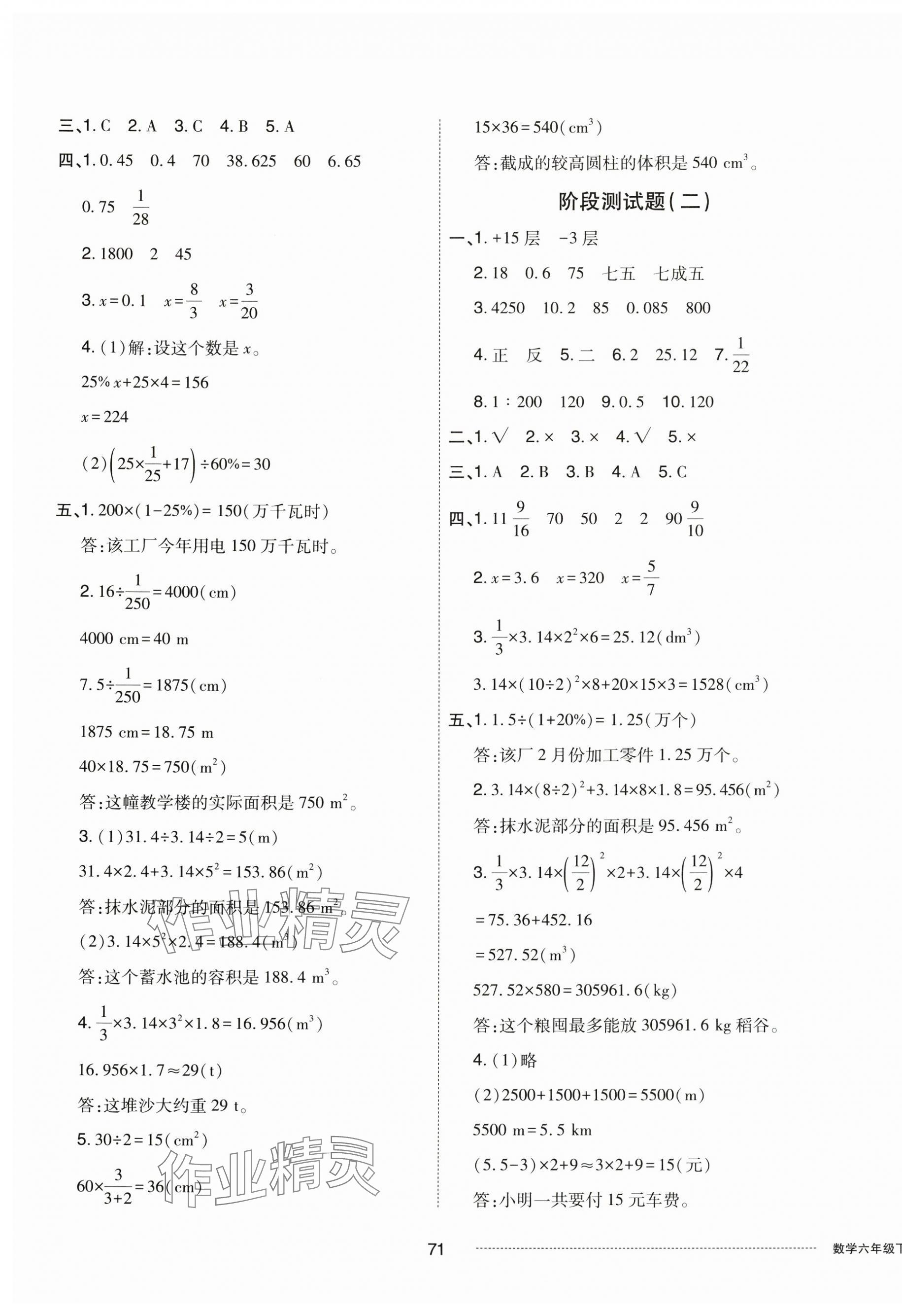 注:目前有些书本章节名称可能整理的还不是很完善,但都是按照顺序排列的,请同学们按照顺序仔细查找。练习册 2025年同步练习册配套单元自测卷六年级数学下册人教版 答案主要是用来给同学们做完题方便对答案用的,请勿直接抄袭。