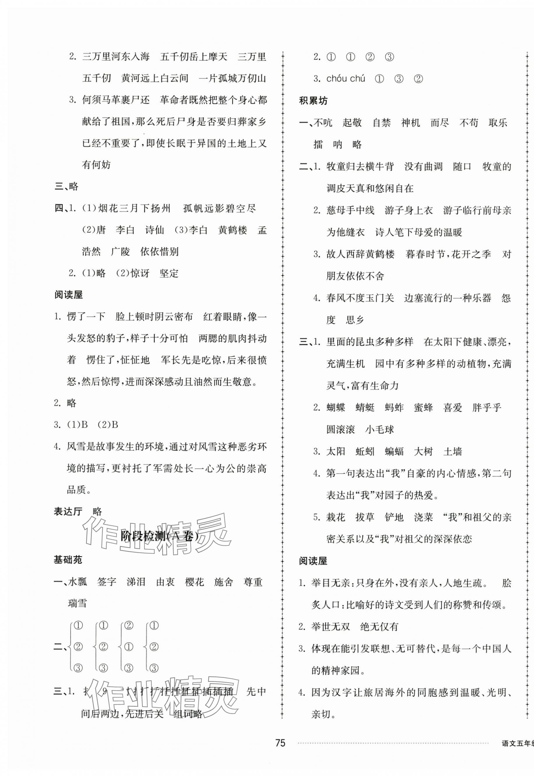 注:目前有些书本章节名称可能整理的还不是很完善,但都是按照顺序排列的,请同学们按照顺序仔细查找。练习册 2025年同步练习册配套单元自测卷五年级语文下册人教版 答案主要是用来给同学们做完题方便对答案用的,请勿直接抄袭。