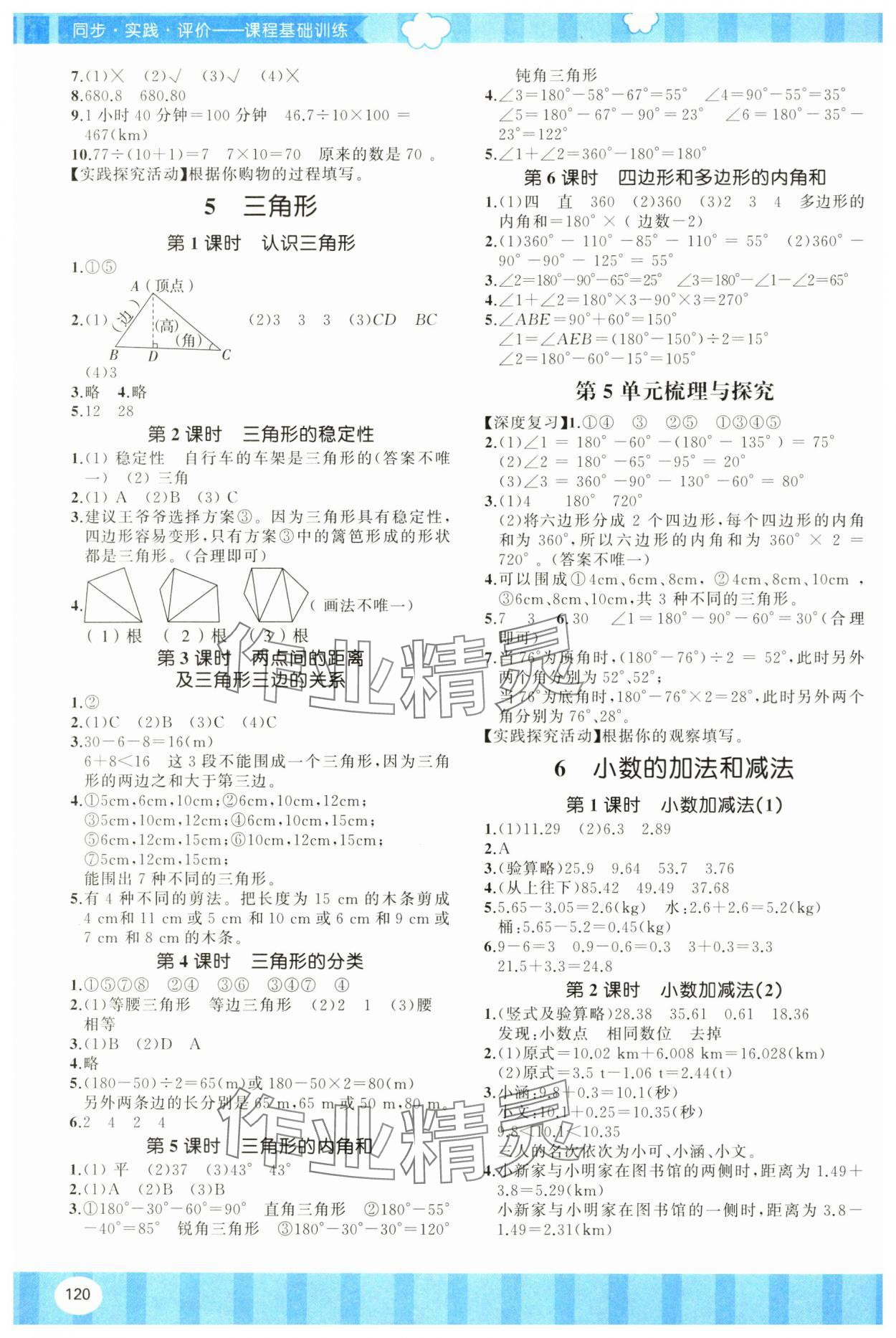 注:目前有些书本章节名称可能整理的还不是很完善,但都是按照顺序排列的,请同学们按照顺序仔细查找。练习册 2025年同步实践评价课程基础训练湖南少年儿童出版社四年级数学下册人教版 答案主要是用来给同学们做完题方便对答案用的,请勿直接抄袭。