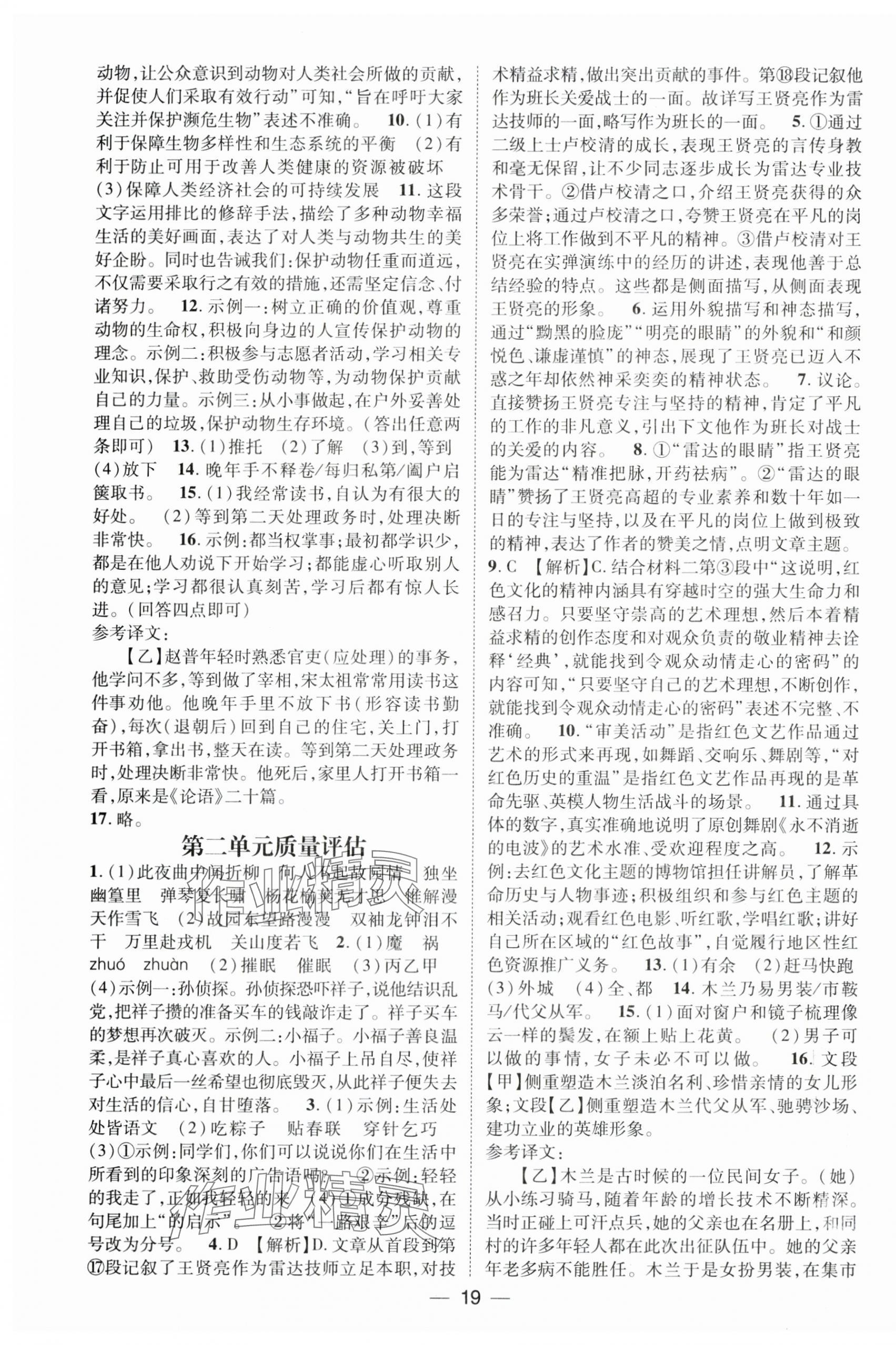 注:目前有些书本章节名称可能整理的还不是很完善,但都是按照顺序排列的,请同学们按照顺序仔细查找。练习册 2025年精英新课堂七年级语文下册人教版安徽专版 答案主要是用来给同学们做完题方便对答案用的,请勿直接抄袭。