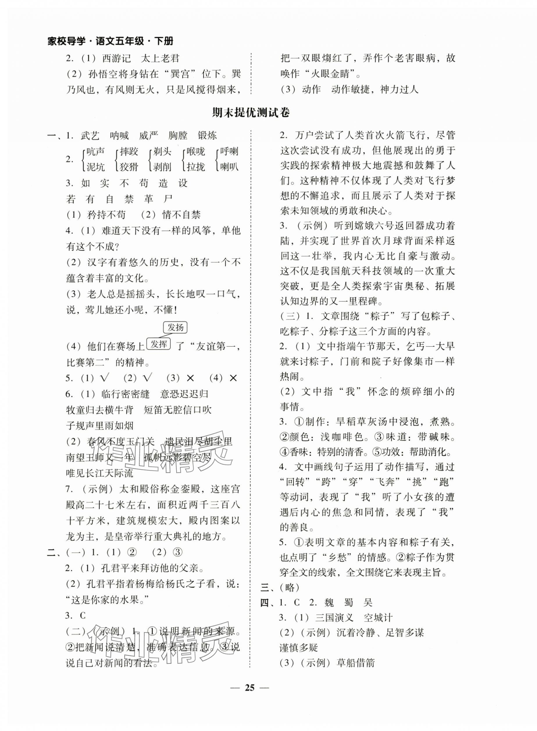 注:目前有些书本章节名称可能整理的还不是很完善,但都是按照顺序排列的,请同学们按照顺序仔细查找。练习册 2025年家校导学五年级语文下册 答案主要是用来给同学们做完题方便对答案用的,请勿直接抄袭。