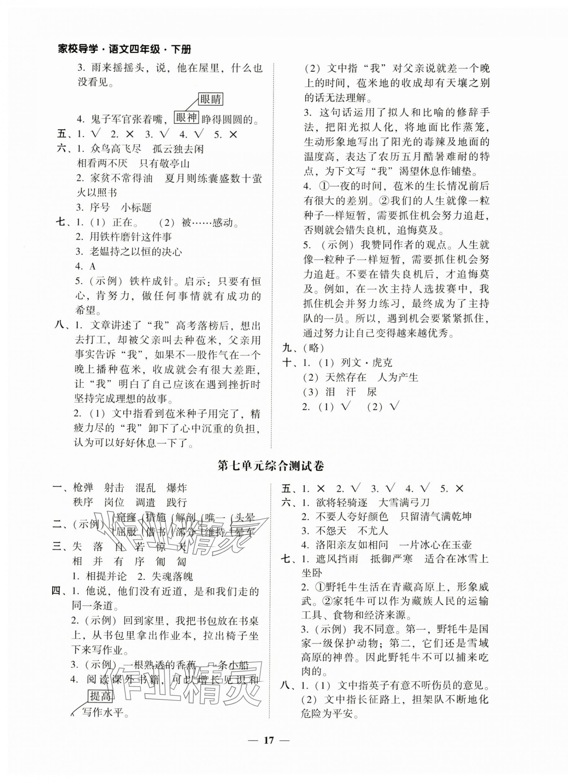注:目前有些书本章节名称可能整理的还不是很完善,但都是按照顺序排列的,请同学们按照顺序仔细查找。练习册 2025年家校导学四年级语文下册 答案主要是用来给同学们做完题方便对答案用的,请勿直接抄袭。