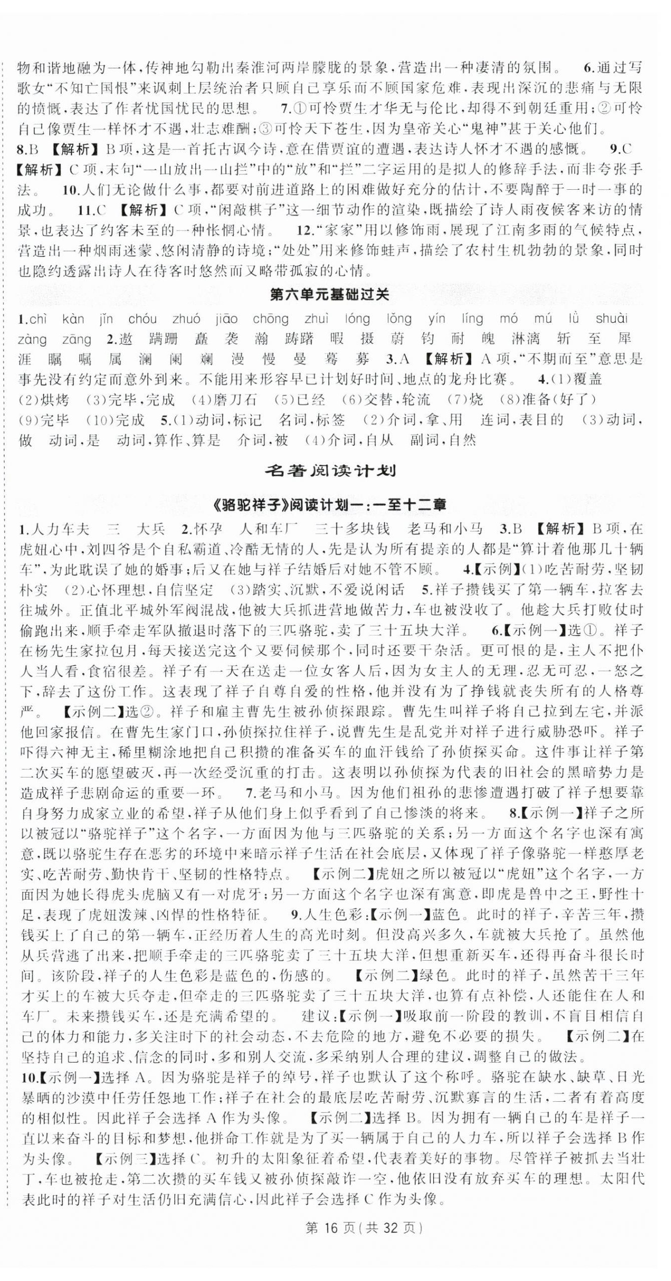 注:目前有些书本章节名称可能整理的还不是很完善,但都是按照顺序排列的,请同学们按照顺序仔细查找。练习册 2025年状元成才路创优作业七年级语文下册人教版 答案主要是用来给同学们做完题方便对答案用的,请勿直接抄袭。