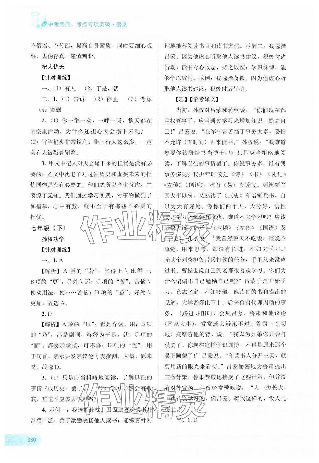 注:目前有些书本章节名称可能整理的还不是很完善,但都是按照顺序排列的,请同学们按照顺序仔细查找。练习册 2025年中考宝典考点专项突破语文广西专版 答案主要是用来给同学们做完题方便对答案用的,请勿直接抄袭。