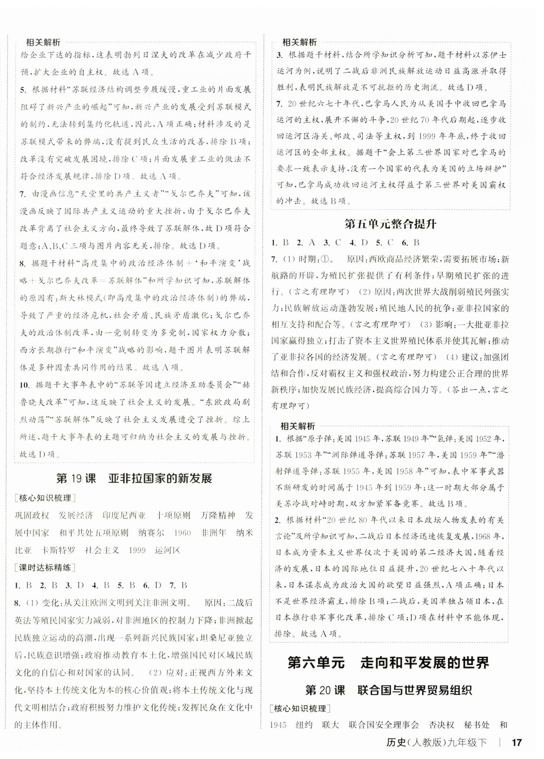 注:目前有些书本章节名称可能整理的还不是很完善,但都是按照顺序排列的,请同学们按照顺序仔细查找。练习册 2025年通城学典课时作业本九年级历史下册人教版 答案主要是用来给同学们做完题方便对答案用的,请勿直接抄袭。