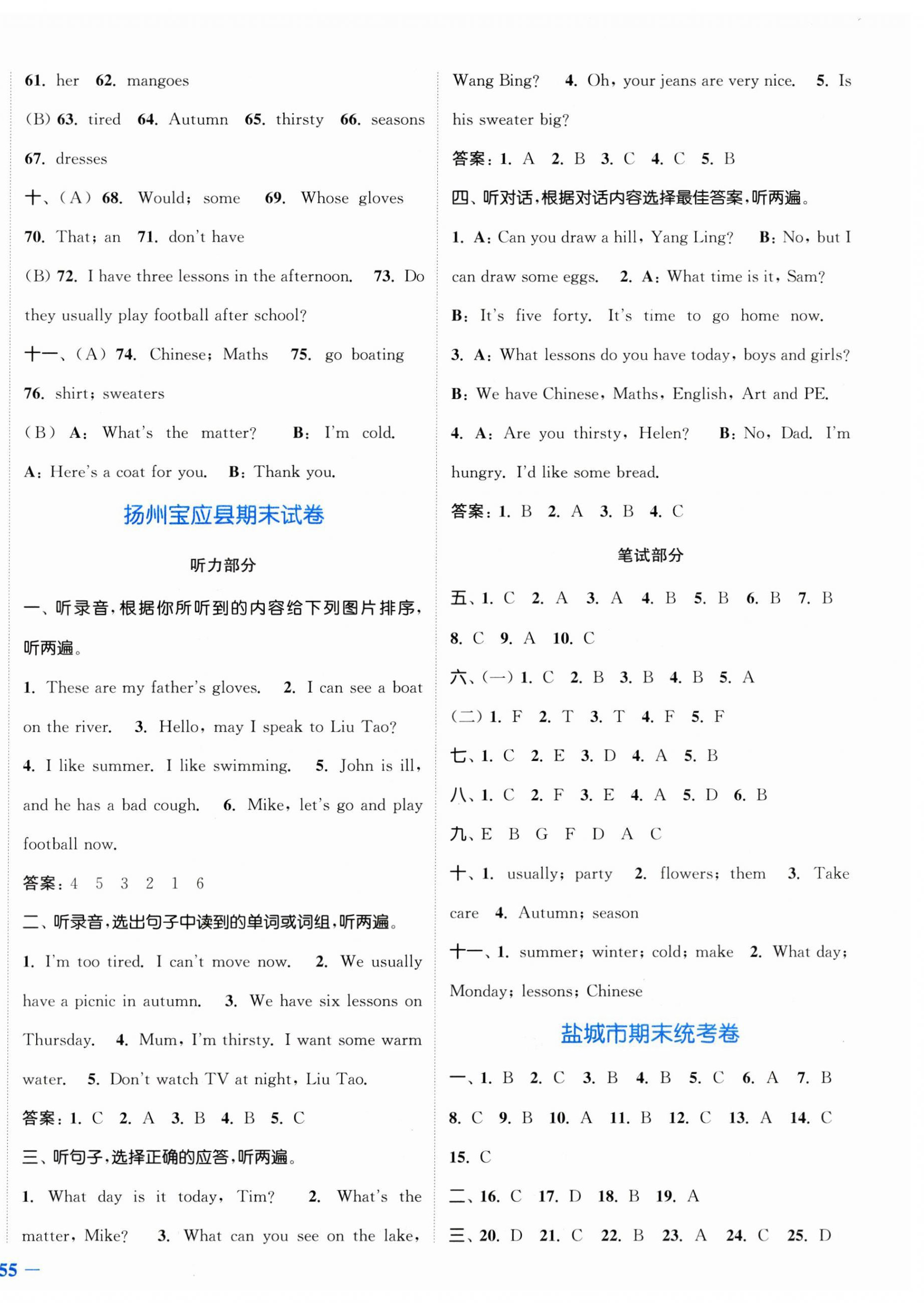注:目前有些书本章节名称可能整理的还不是很完善,但都是按照顺序排列的,请同学们按照顺序仔细查找。练习册 2025年江苏金考卷四年级英语下册译林版 答案主要是用来给同学们做完题方便对答案用的,请勿直接抄袭。