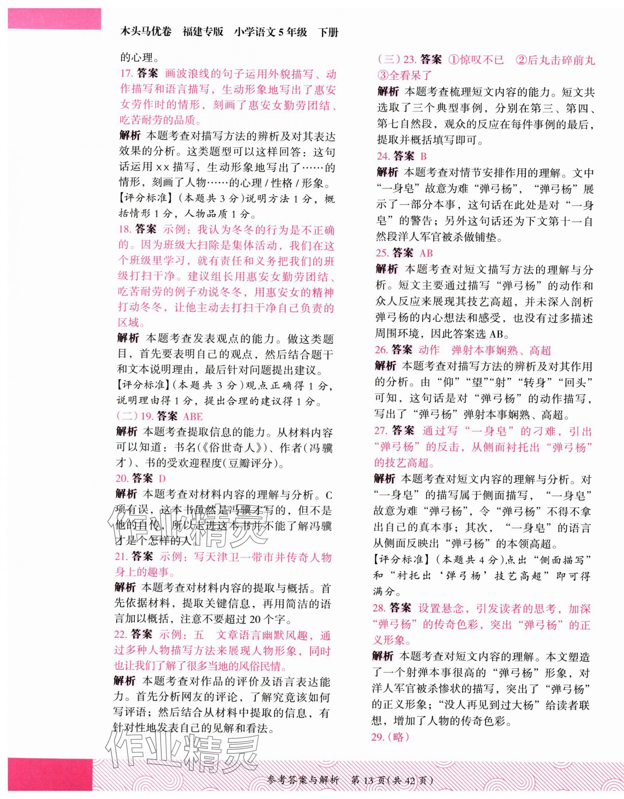 注:目前有些书本章节名称可能整理的还不是很完善,但都是按照顺序排列的,请同学们按照顺序仔细查找。练习册 2025年木头马优卷五年级语文下册人教版福建专版 答案主要是用来给同学们做完题方便对答案用的,请勿直接抄袭。