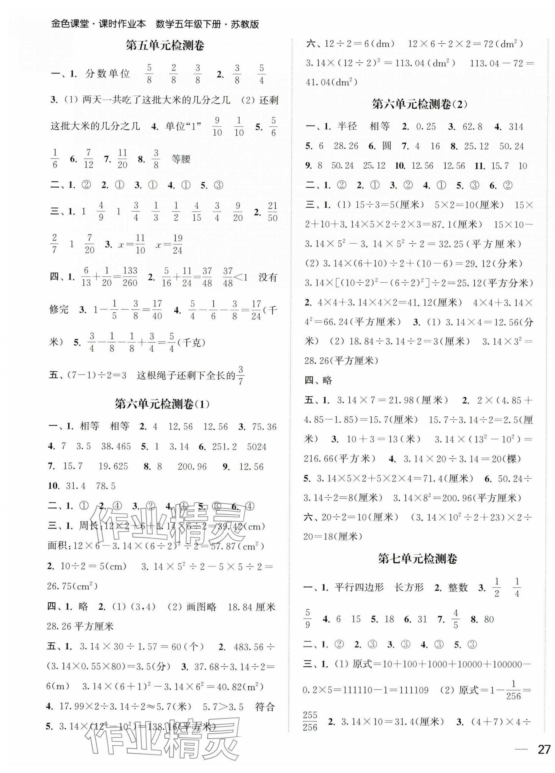 注:目前有些书本章节名称可能整理的还不是很完善,但都是按照顺序排列的,请同学们按照顺序仔细查找。练习册 2025年金色课堂课时作业本五年级数学下册江苏版 答案主要是用来给同学们做完题方便对答案用的,请勿直接抄袭。