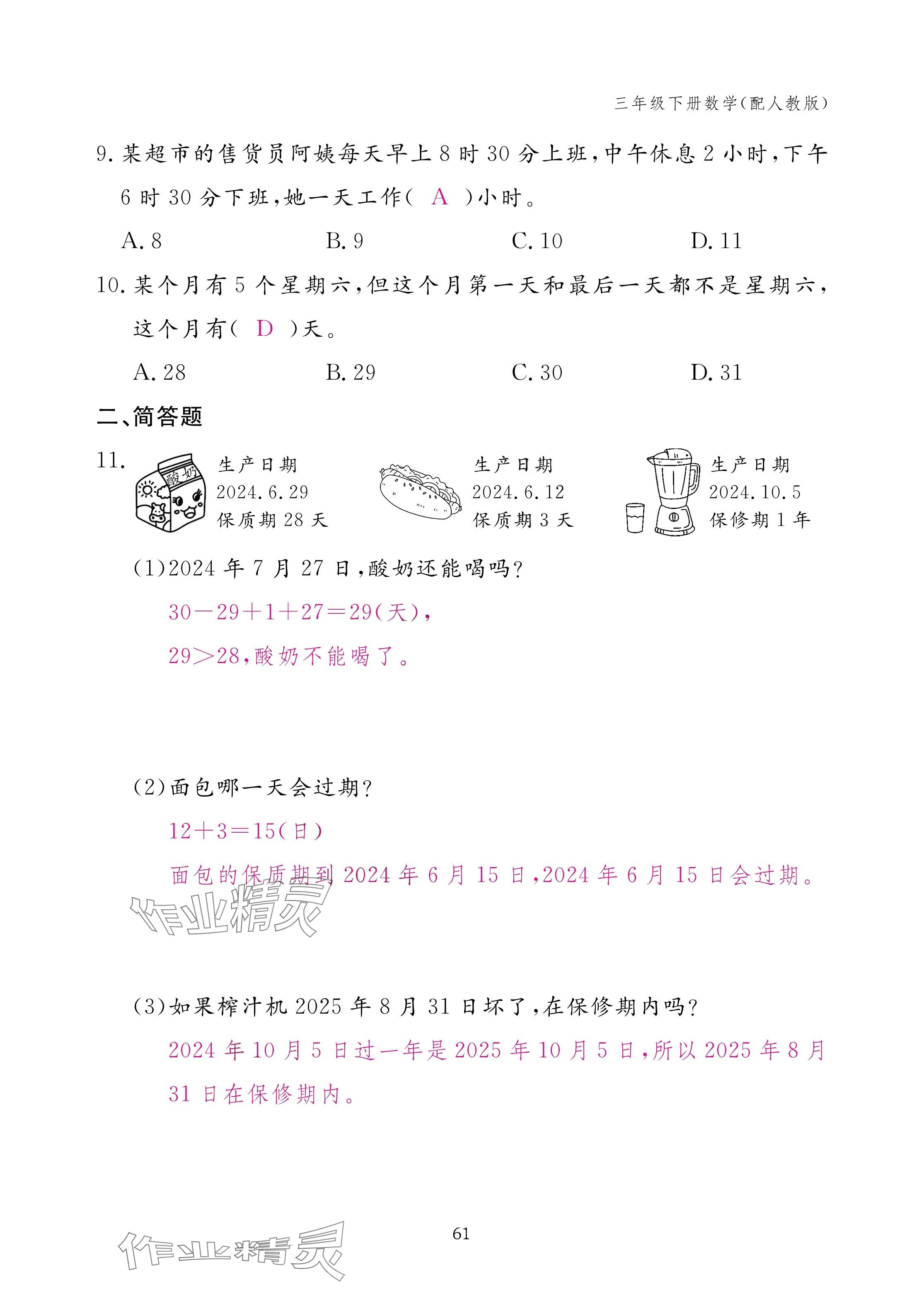 注:目前有些书本章节名称可能整理的还不是很完善,但都是按照顺序排列的,请同学们按照顺序仔细查找。练习册 2025年作业本江西教育出版社三年级数学下册人教版 答案主要是用来给同学们做完题方便对答案用的,请勿直接抄袭。