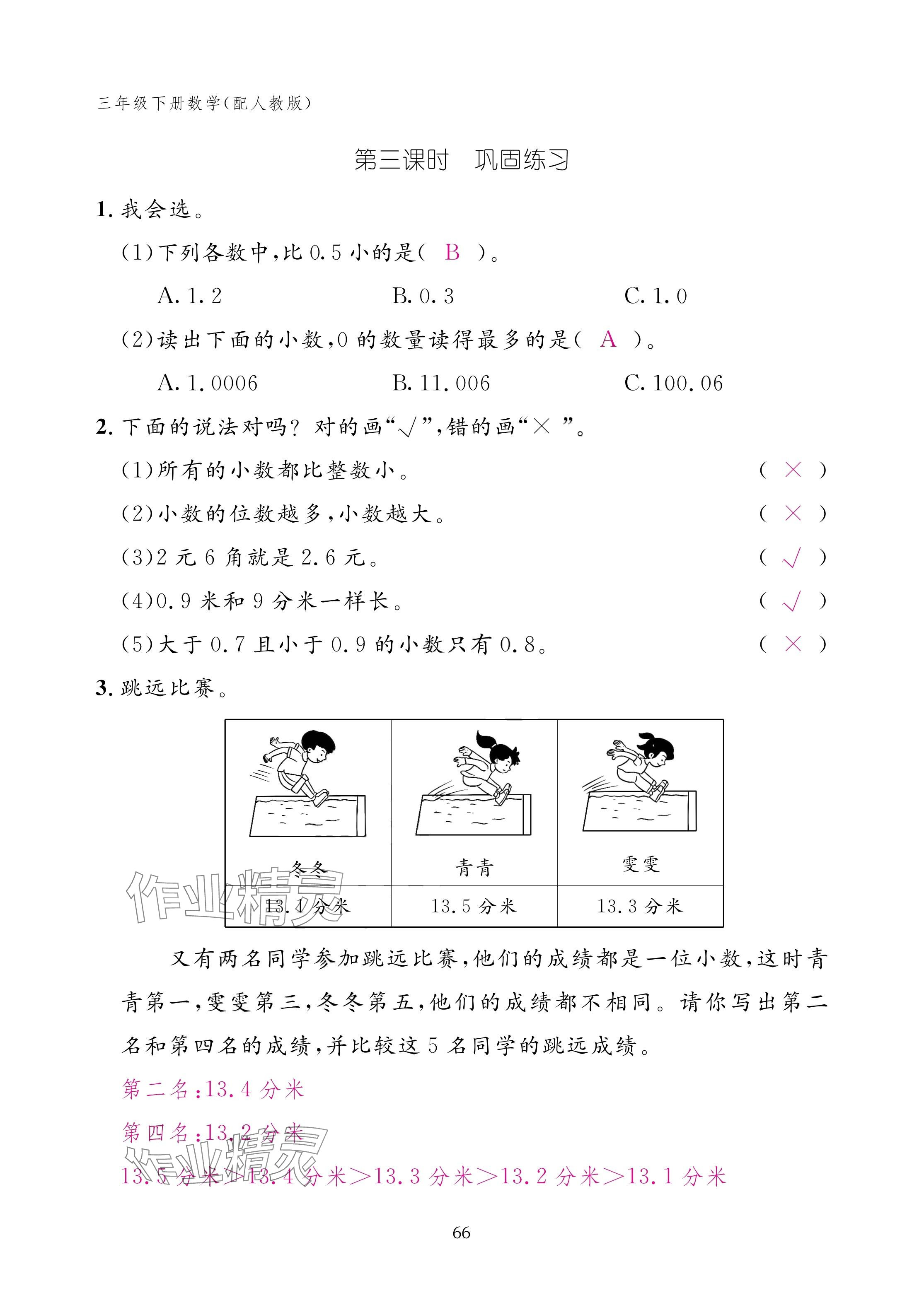 注:目前有些书本章节名称可能整理的还不是很完善,但都是按照顺序排列的,请同学们按照顺序仔细查找。练习册 2025年作业本江西教育出版社三年级数学下册人教版 答案主要是用来给同学们做完题方便对答案用的,请勿直接抄袭。