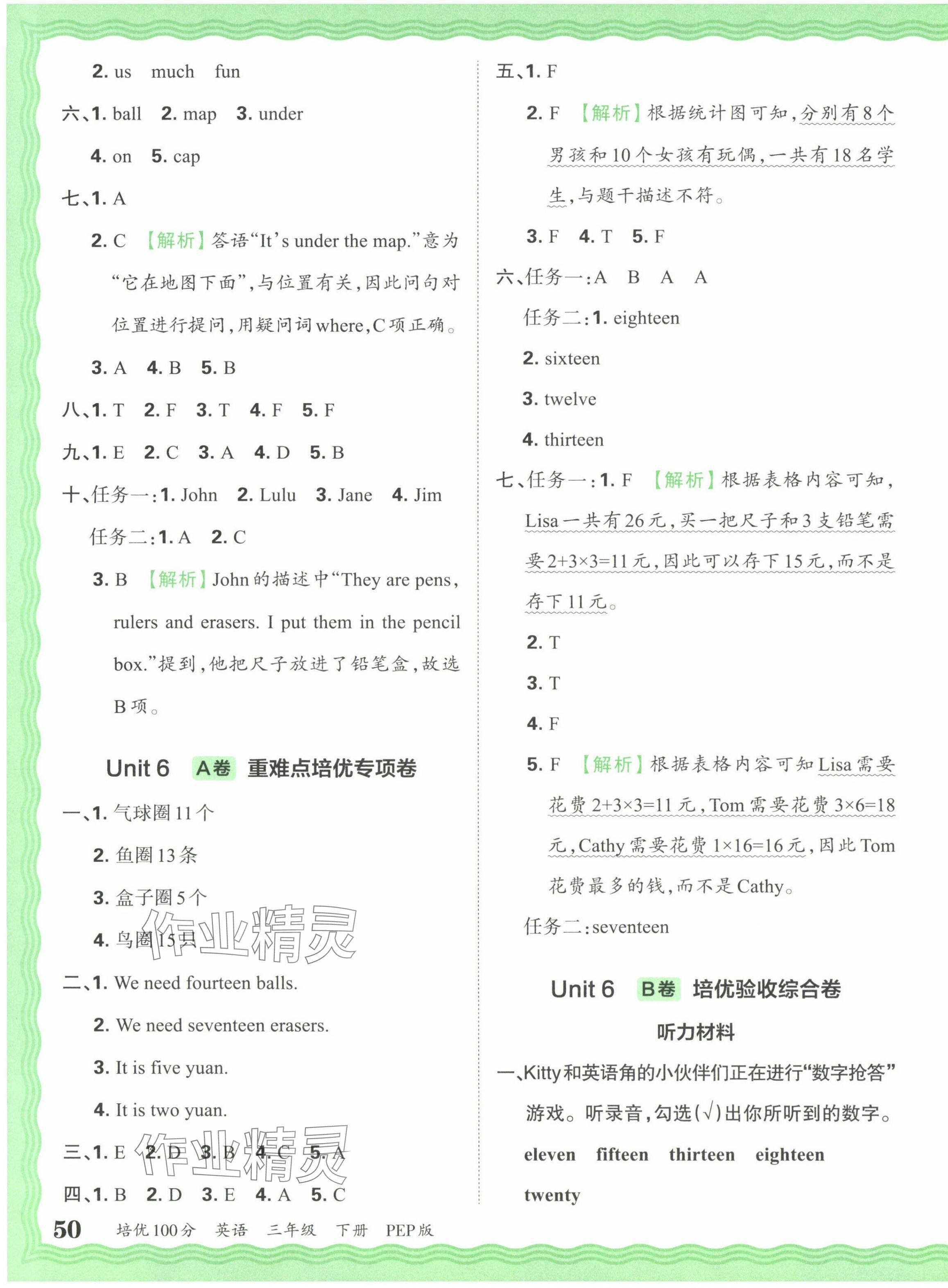 注:目前有些书本章节名称可能整理的还不是很完善,但都是按照顺序排列的,请同学们按照顺序仔细查找。练习册 2025年王朝霞培优100分三年级英语下册人教版 答案主要是用来给同学们做完题方便对答案用的,请勿直接抄袭。