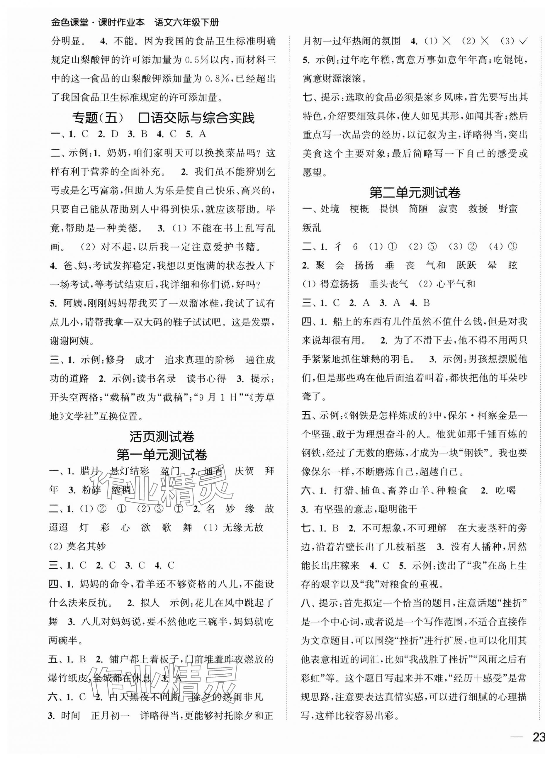 注:目前有些书本章节名称可能整理的还不是很完善,但都是按照顺序排列的,请同学们按照顺序仔细查找。练习册 2025年金色课堂课时作业本六年级语文下册人教版提优版 答案主要是用来给同学们做完题方便对答案用的,请勿直接抄袭。