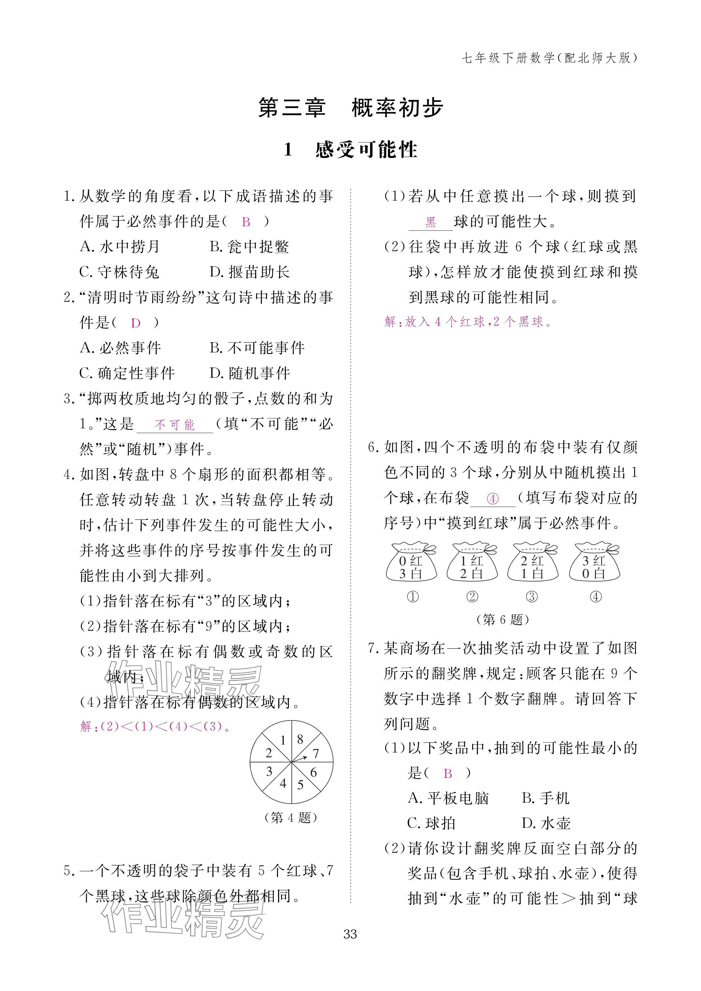 注:目前有些书本章节名称可能整理的还不是很完善,但都是按照顺序排列的,请同学们按照顺序仔细查找。练习册 2025年作业本江西教育出版社七年级数学下册北师大版 答案主要是用来给同学们做完题方便对答案用的,请勿直接抄袭。