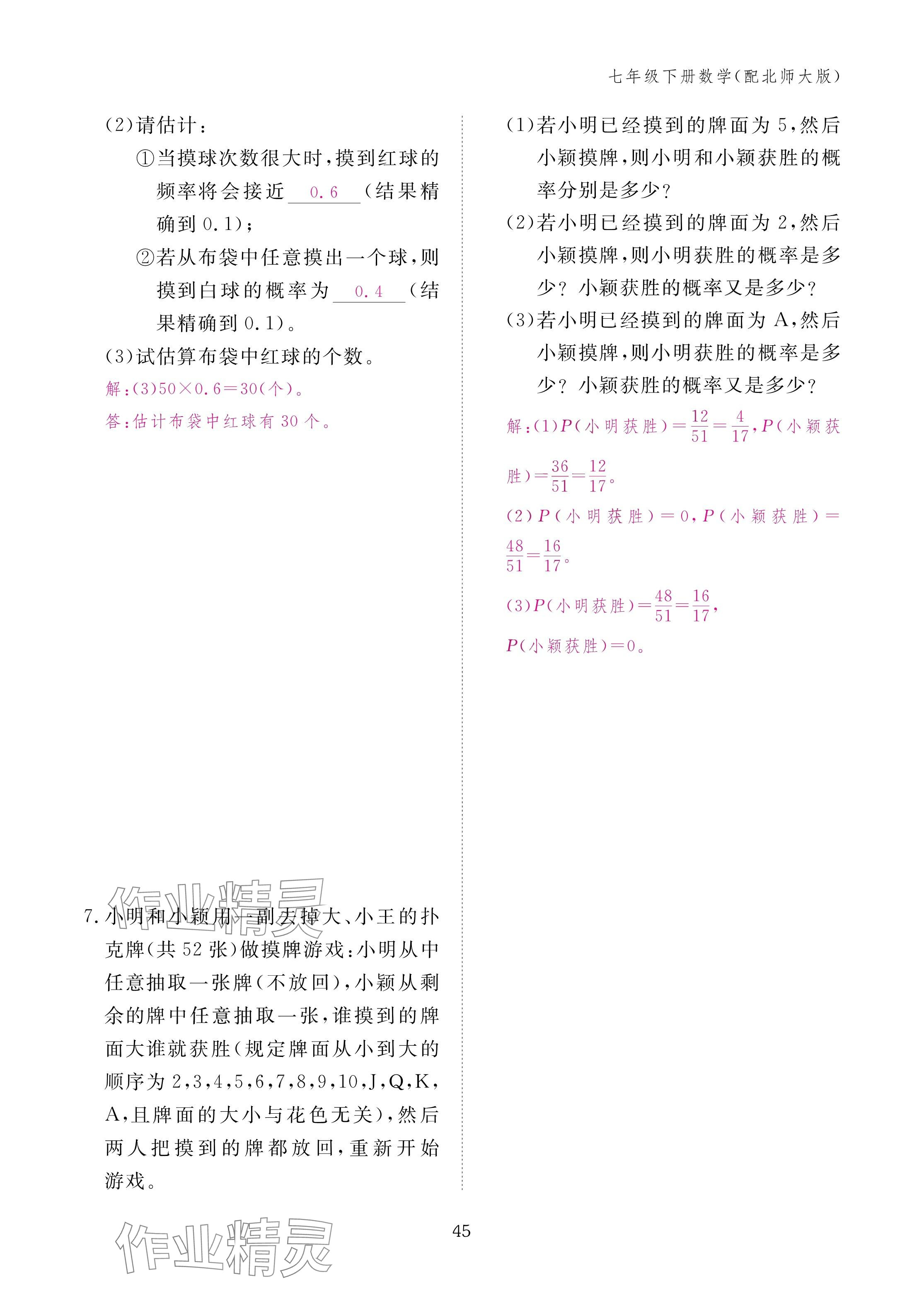 注:目前有些书本章节名称可能整理的还不是很完善,但都是按照顺序排列的,请同学们按照顺序仔细查找。练习册 2025年作业本江西教育出版社七年级数学下册北师大版 答案主要是用来给同学们做完题方便对答案用的,请勿直接抄袭。
