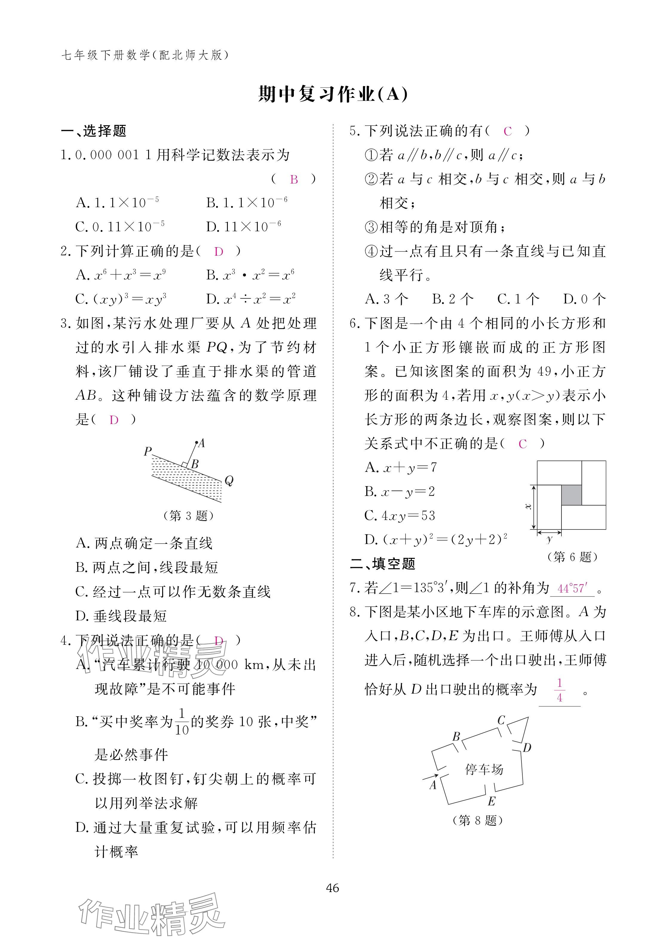注:目前有些书本章节名称可能整理的还不是很完善,但都是按照顺序排列的,请同学们按照顺序仔细查找。练习册 2025年作业本江西教育出版社七年级数学下册北师大版 答案主要是用来给同学们做完题方便对答案用的,请勿直接抄袭。