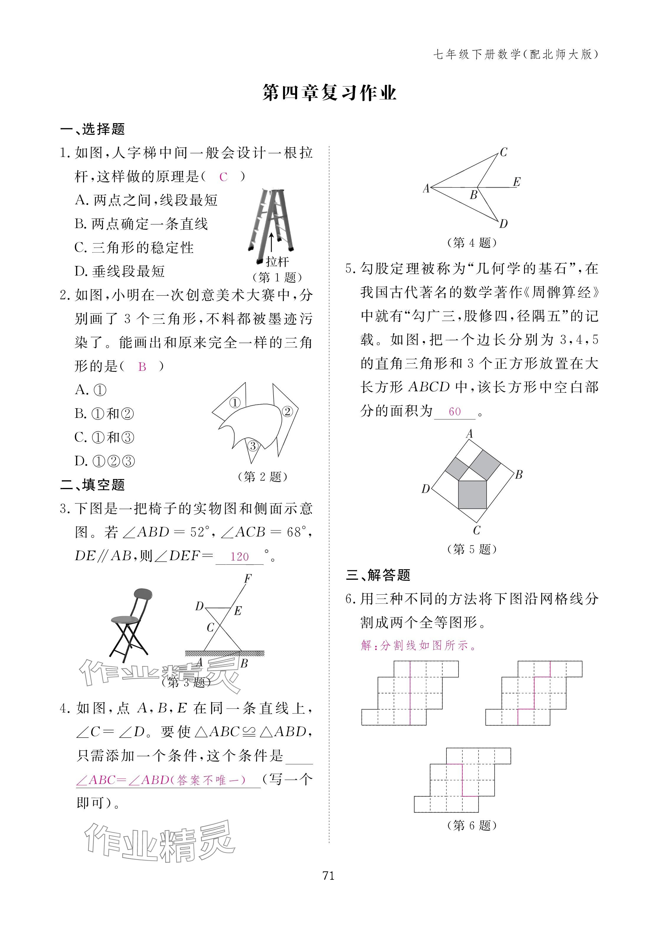 注:目前有些书本章节名称可能整理的还不是很完善,但都是按照顺序排列的,请同学们按照顺序仔细查找。练习册 2025年作业本江西教育出版社七年级数学下册北师大版 答案主要是用来给同学们做完题方便对答案用的,请勿直接抄袭。