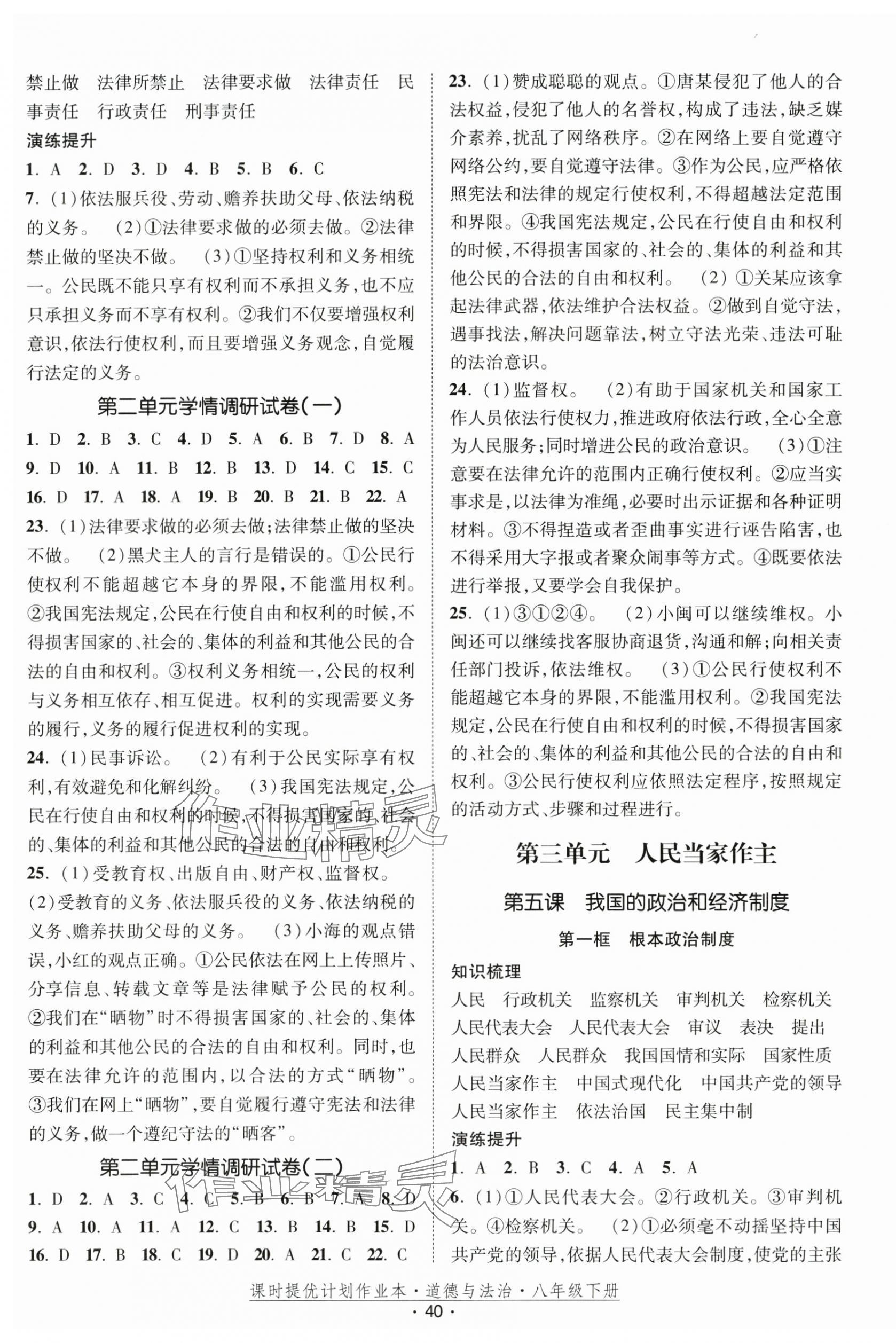 注:目前有些书本章节名称可能整理的还不是很完善,但都是按照顺序排列的,请同学们按照顺序仔细查找。练习册 2025年课时提优计划作业本八年级道德与法治下册人教版 答案主要是用来给同学们做完题方便对答案用的,请勿直接抄袭。