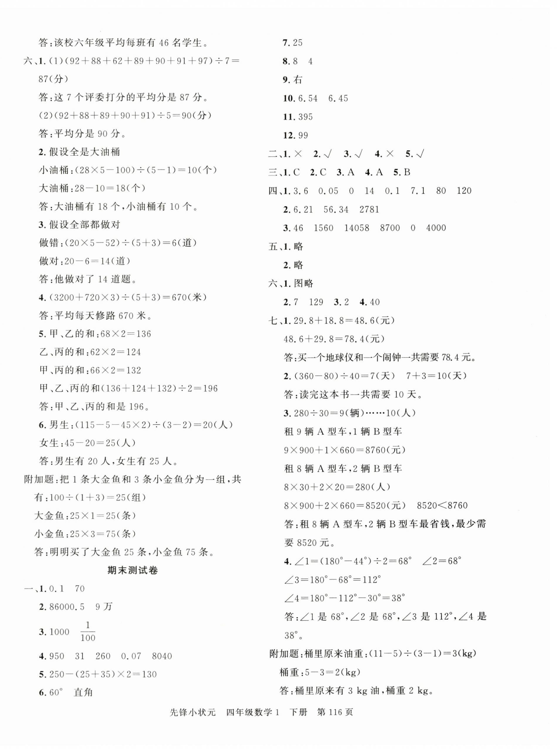 注:目前有些书本章节名称可能整理的还不是很完善,但都是按照顺序排列的,请同学们按照顺序仔细查找。练习册 2025年先锋小状元四年级数学下册人教版 答案主要是用来给同学们做完题方便对答案用的,请勿直接抄袭。