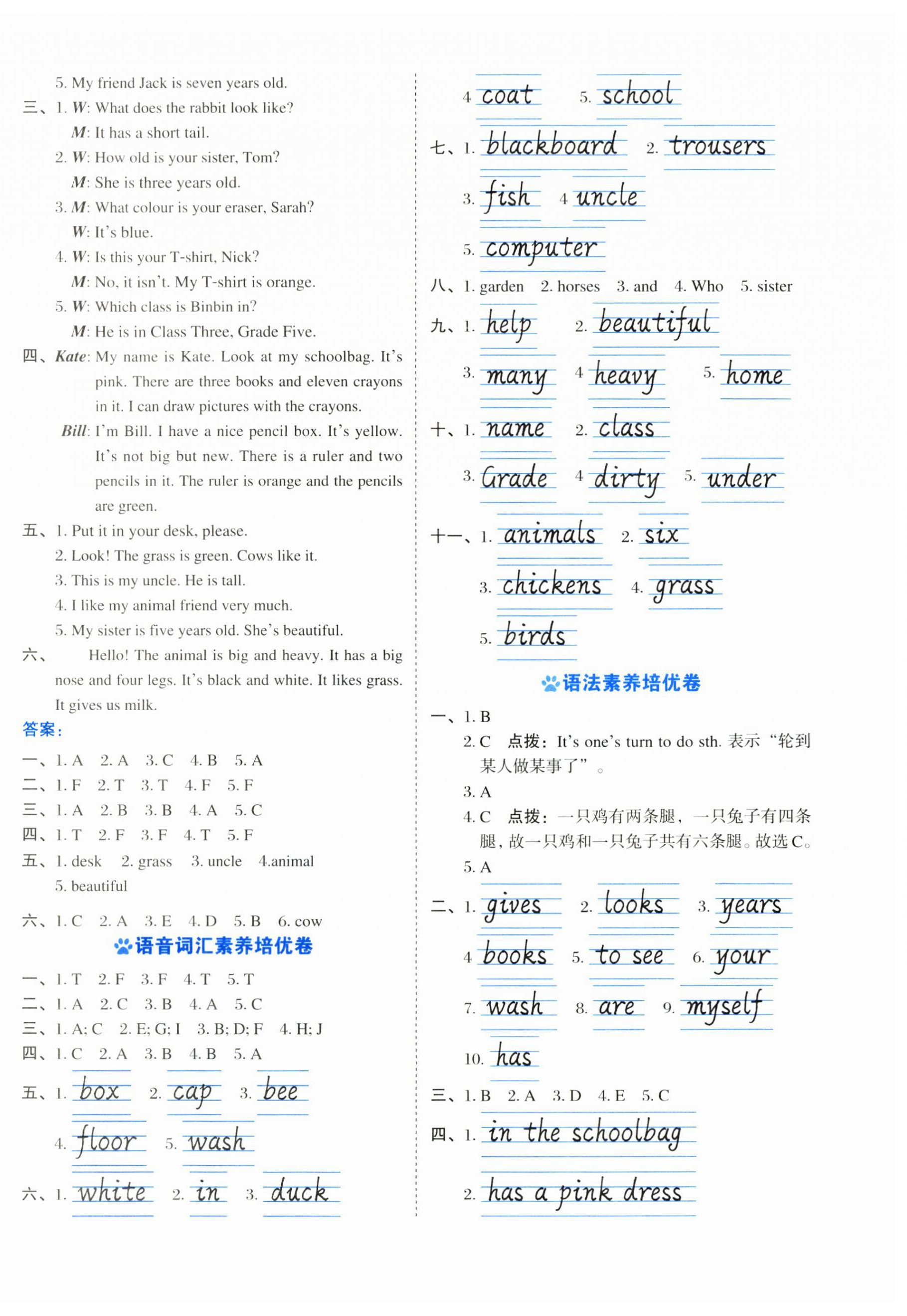 注:目前有些书本章节名称可能整理的还不是很完善,但都是按照顺序排列的,请同学们按照顺序仔细查找。练习册 2025年好卷三年级英语下册人教精通版 答案主要是用来给同学们做完题方便对答案用的,请勿直接抄袭。