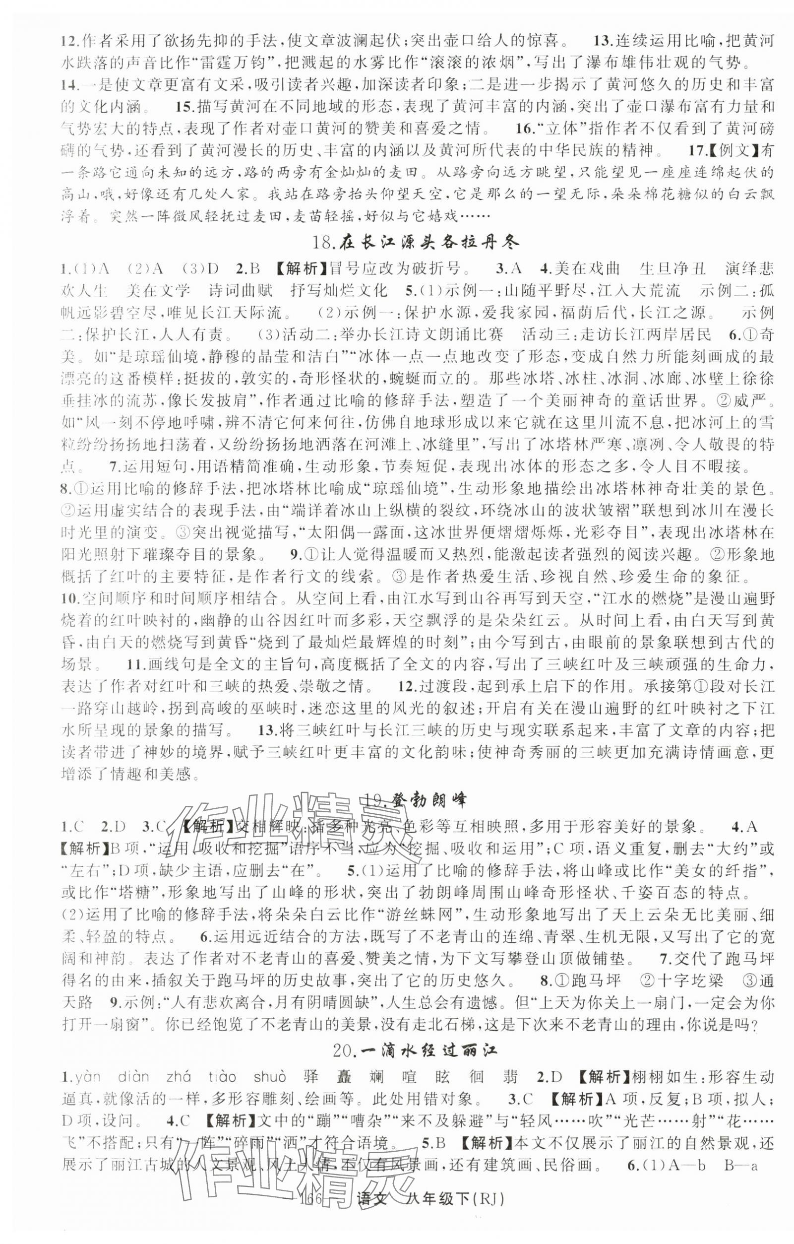 注:目前有些书本章节名称可能整理的还不是很完善,但都是按照顺序排列的,请同学们按照顺序仔细查找。练习册 2025年黄冈100分闯关八年级语文下册人教版 答案主要是用来给同学们做完题方便对答案用的,请勿直接抄袭。