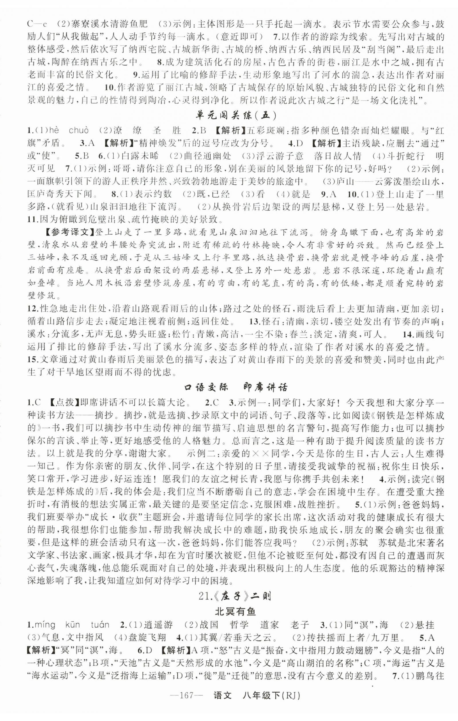 注:目前有些书本章节名称可能整理的还不是很完善,但都是按照顺序排列的,请同学们按照顺序仔细查找。练习册 2025年黄冈100分闯关八年级语文下册人教版 答案主要是用来给同学们做完题方便对答案用的,请勿直接抄袭。