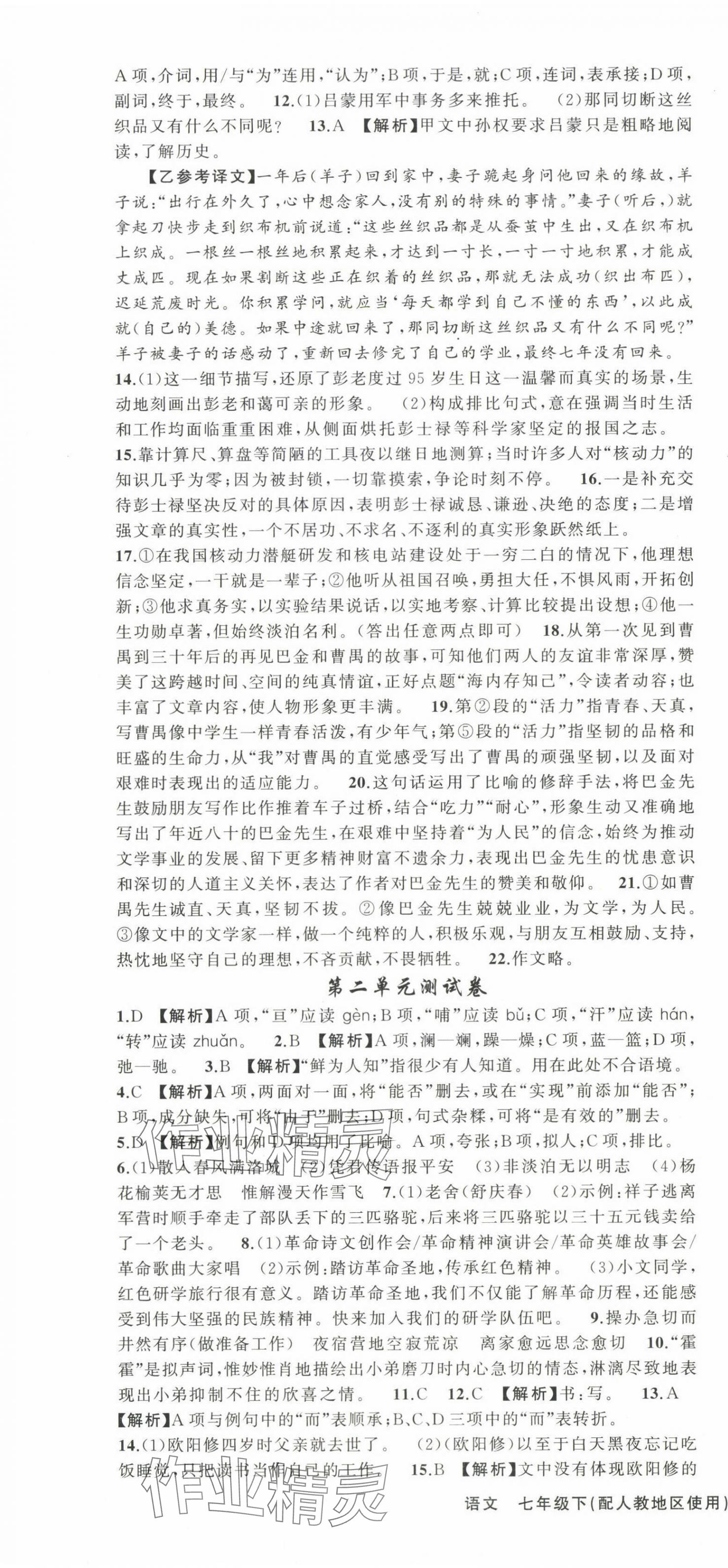 注:目前有些书本章节名称可能整理的还不是很完善,但都是按照顺序排列的,请同学们按照顺序仔细查找。练习册 2025年黄冈100分闯关七年级语文下册人教版 答案主要是用来给同学们做完题方便对答案用的,请勿直接抄袭。