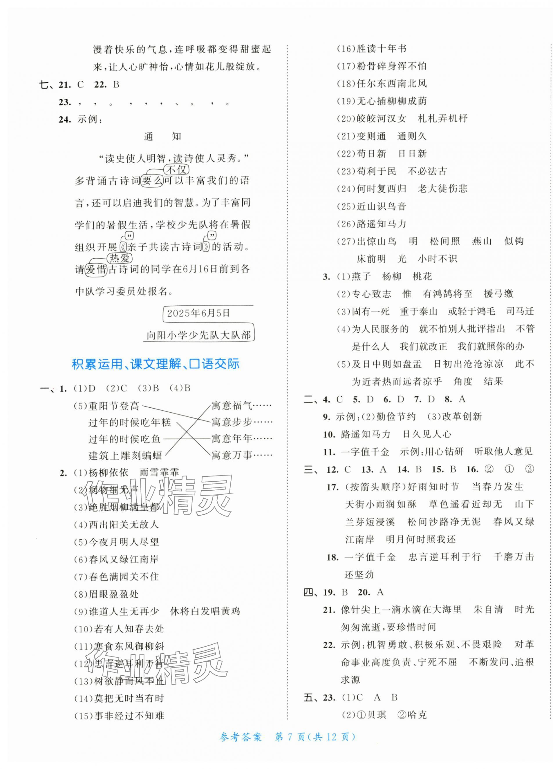 注:目前有些书本章节名称可能整理的还不是很完善,但都是按照顺序排列的,请同学们按照顺序仔细查找。练习册 2025年53全优卷六年级语文下册新题型版 答案主要是用来给同学们做完题方便对答案用的,请勿直接抄袭。