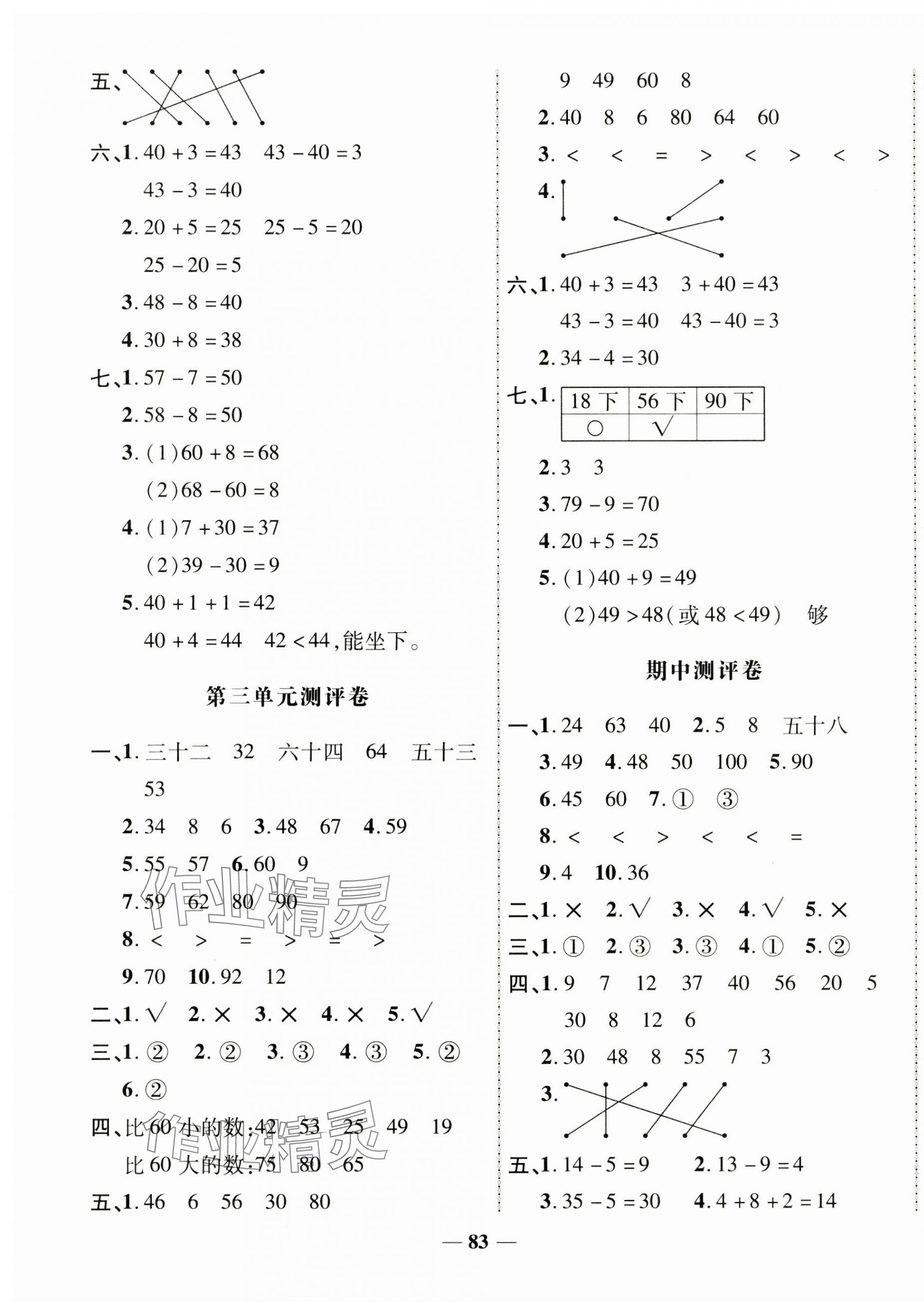 注:目前有些书本章节名称可能整理的还不是很完善,但都是按照顺序排列的,请同学们按照顺序仔细查找。练习册 2025年优加全能大考卷一年级数学下册人教版 答案主要是用来给同学们做完题方便对答案用的,请勿直接抄袭。