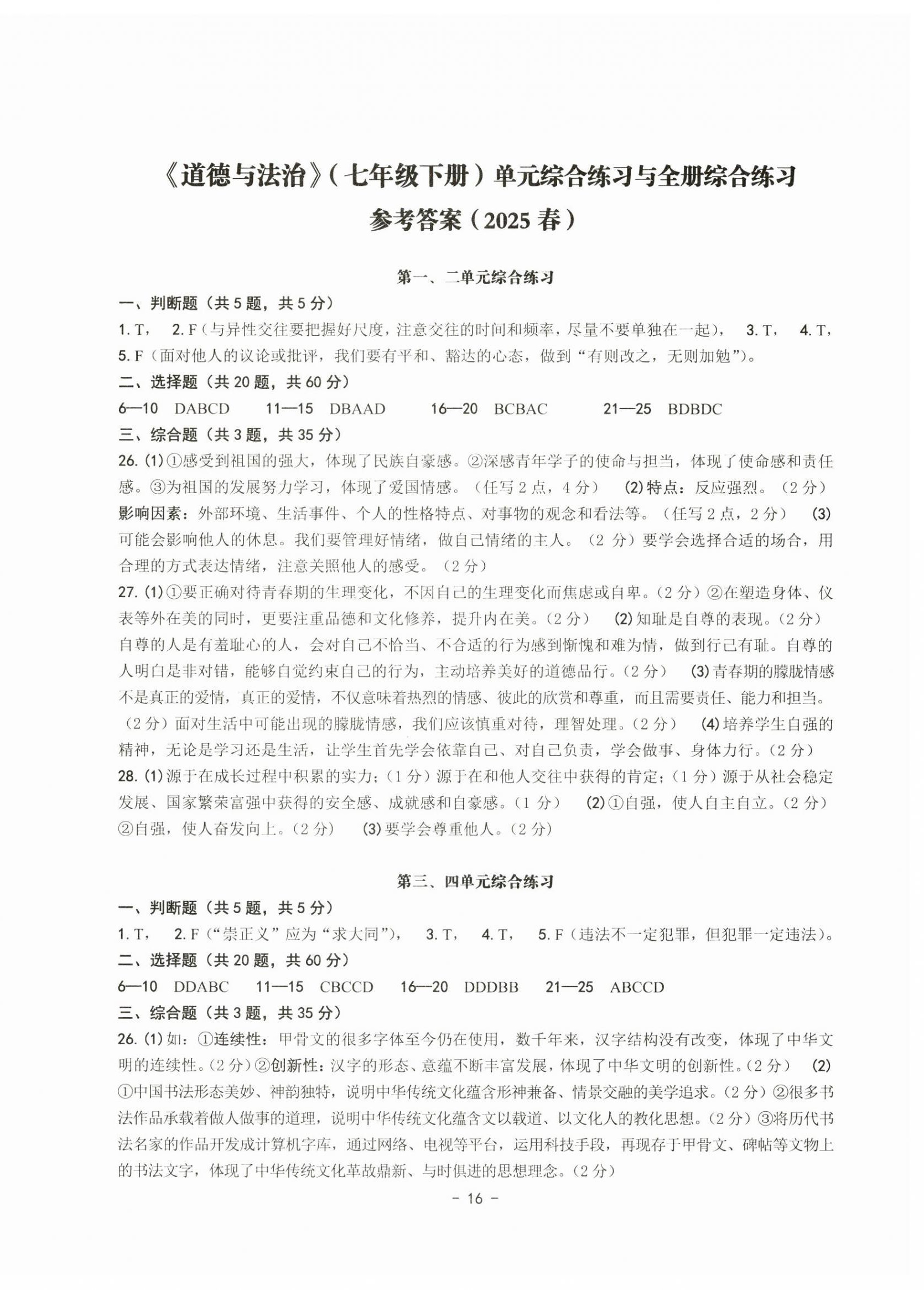 注:目前有些书本章节名称可能整理的还不是很完善,但都是按照顺序排列的,请同学们按照顺序仔细查找。练习册 2025年练习精编七年级道德与法治下册人教版 答案主要是用来给同学们做完题方便对答案用的,请勿直接抄袭。