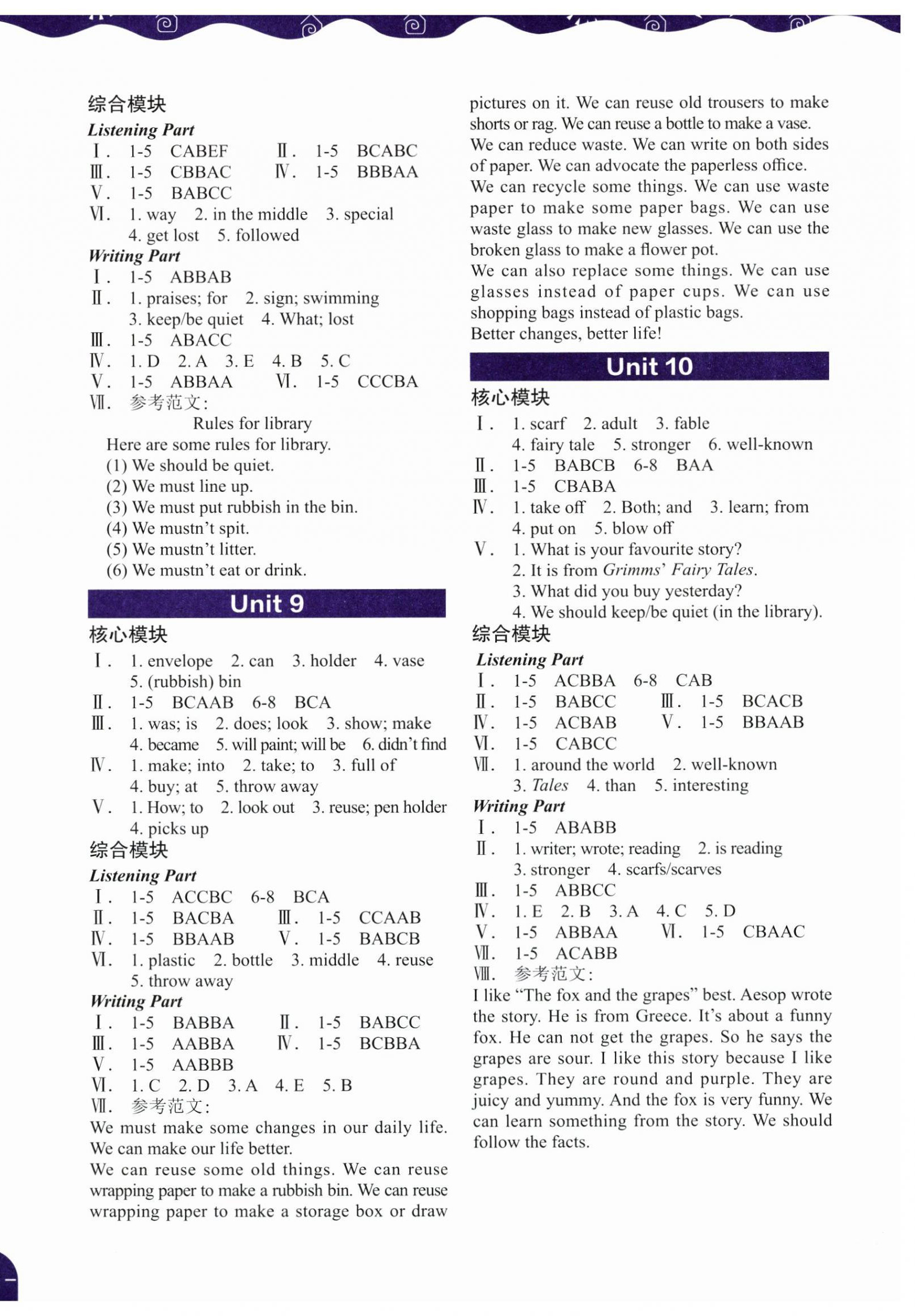 注:目前有些书本章节名称可能整理的还不是很完善,但都是按照顺序排列的,请同学们按照顺序仔细查找。练习册 2025年课堂在线六年级英语下册沪教版 答案主要是用来给同学们做完题方便对答案用的,请勿直接抄袭。