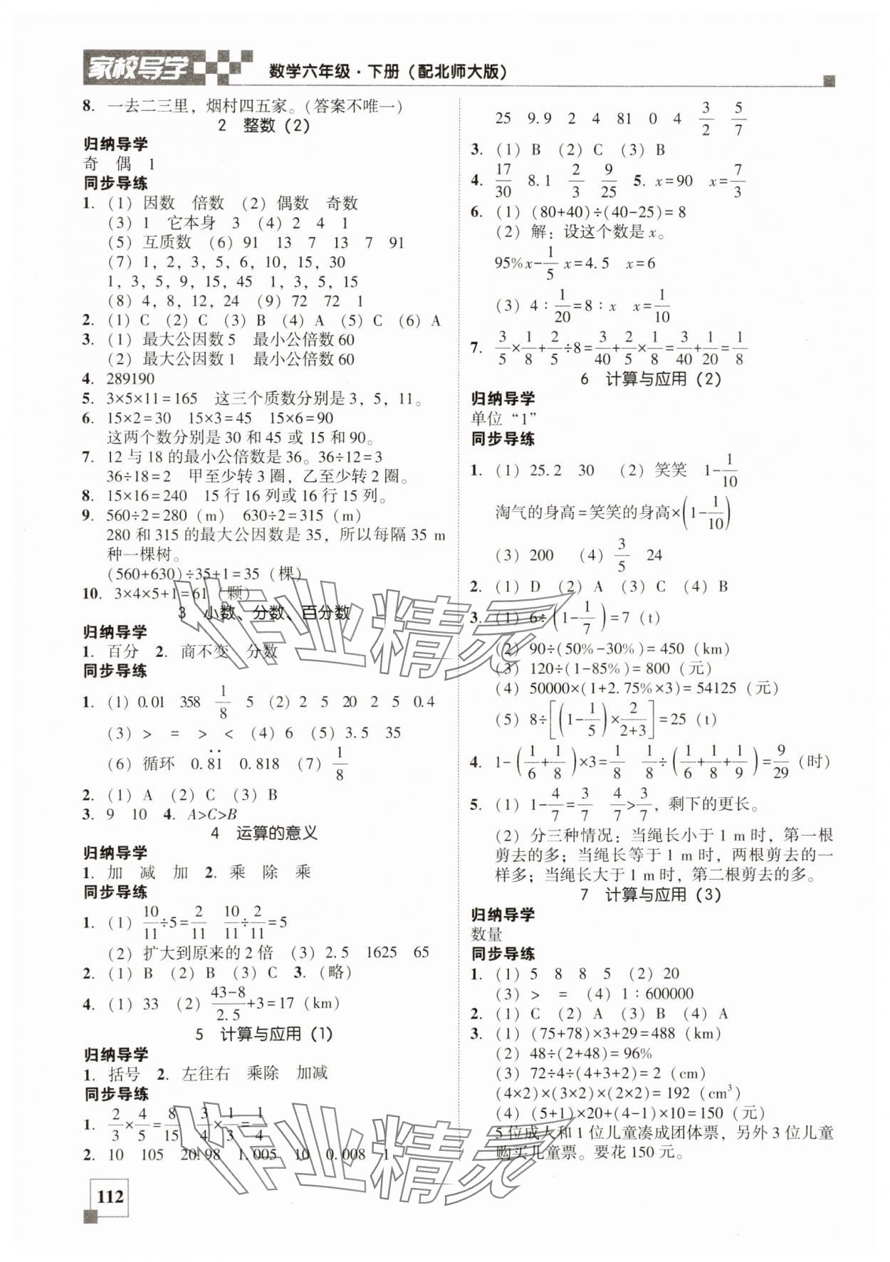 注:目前有些书本章节名称可能整理的还不是很完善,但都是按照顺序排列的,请同学们按照顺序仔细查找。练习册 2025年家校导学小学课时南粤练案六年级数学下册北师大版 答案主要是用来给同学们做完题方便对答案用的,请勿直接抄袭。