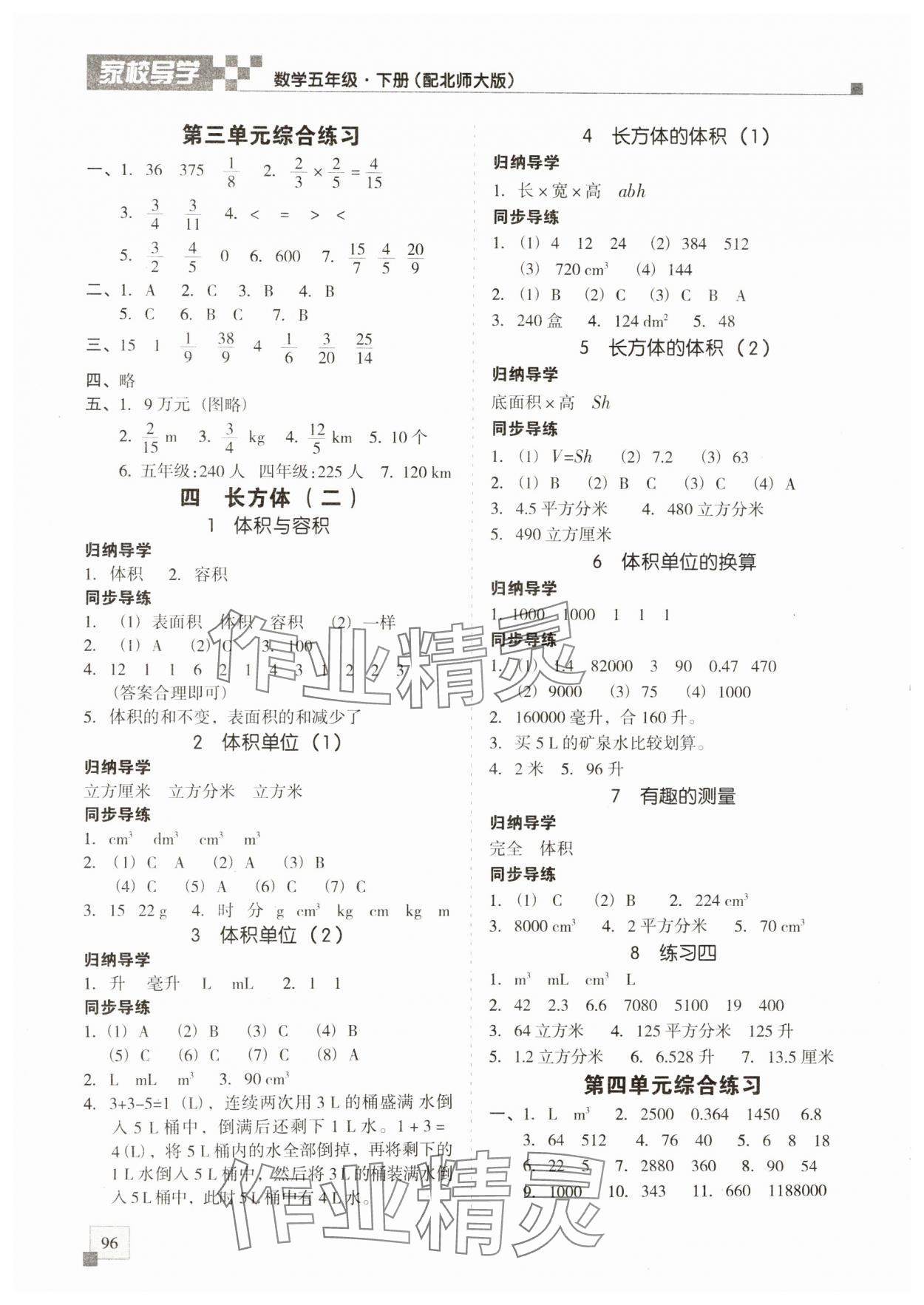 注:目前有些书本章节名称可能整理的还不是很完善,但都是按照顺序排列的,请同学们按照顺序仔细查找。练习册 2025年家校导学小学课时南粤练案五年级数学下册北师大版 答案主要是用来给同学们做完题方便对答案用的,请勿直接抄袭。