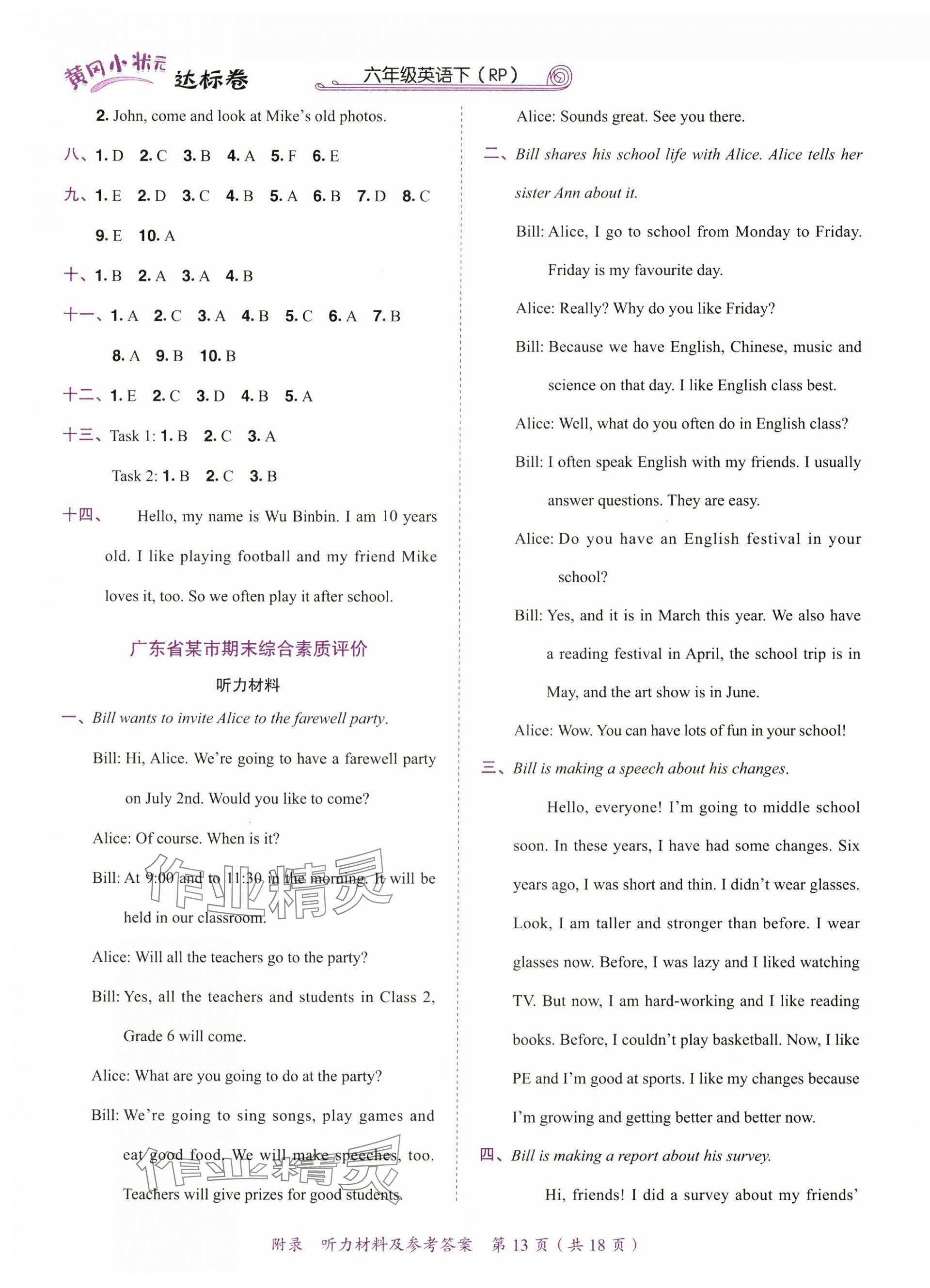 注:目前有些书本章节名称可能整理的还不是很完善,但都是按照顺序排列的,请同学们按照顺序仔细查找。练习册 2025年黄冈小状元达标卷六年级英语下册人教PEP版广东专版 答案主要是用来给同学们做完题方便对答案用的,请勿直接抄袭。
