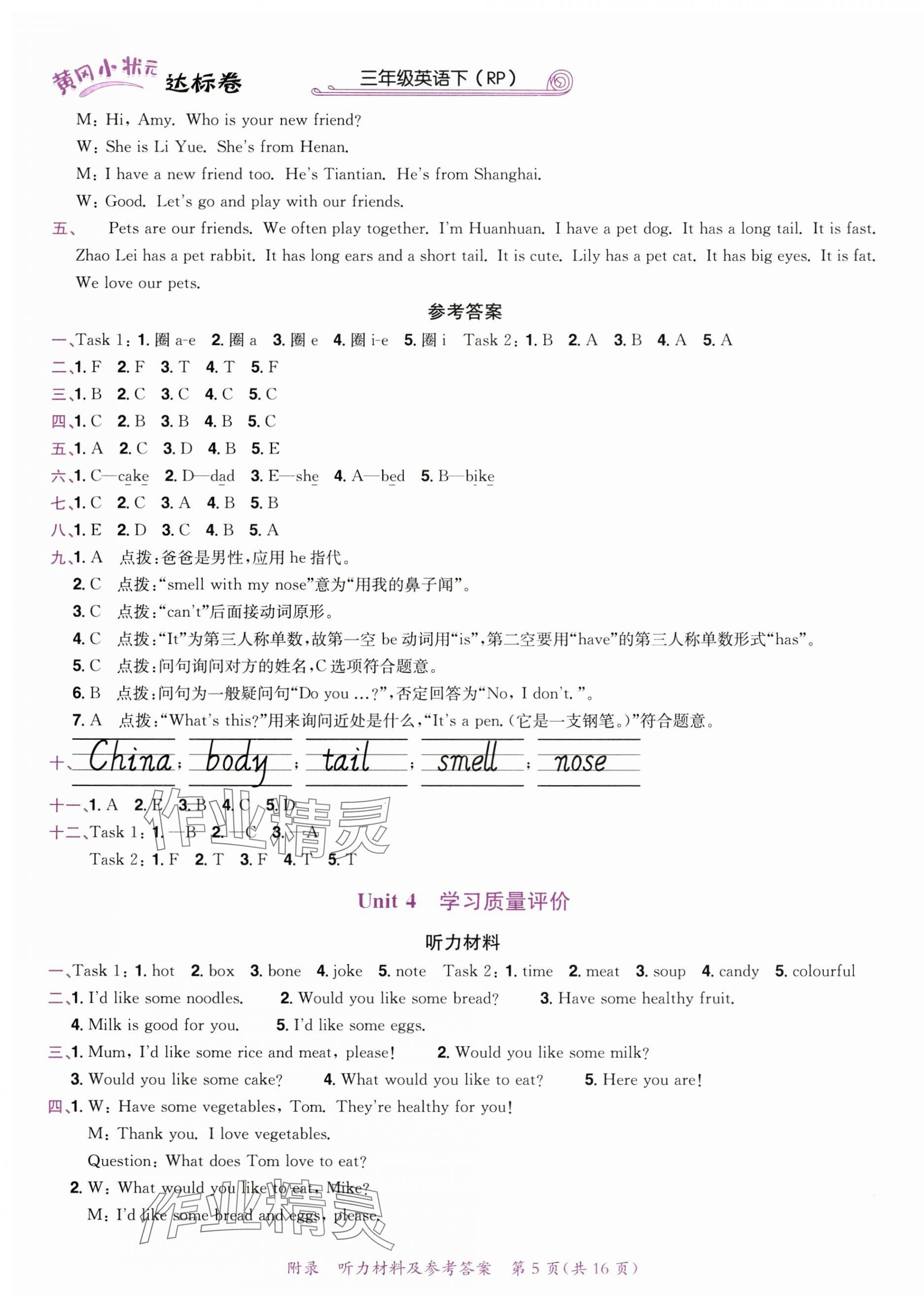 注:目前有些书本章节名称可能整理的还不是很完善,但都是按照顺序排列的,请同学们按照顺序仔细查找。练习册 2025年黄冈小状元达标卷三年级英语下册人教版广东专版 答案主要是用来给同学们做完题方便对答案用的,请勿直接抄袭。