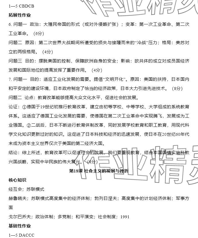 注:目前有些书本章节名称可能整理的还不是很完善,但都是按照顺序排列的,请同学们按照顺序仔细查找。练习册 2025年知识与能力训练九年级历史下册人教版 答案主要是用来给同学们做完题方便对答案用的,请勿直接抄袭。