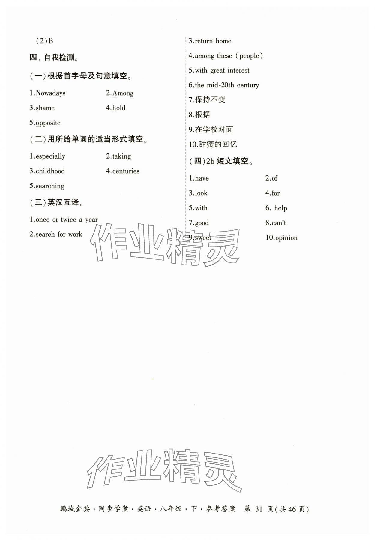 注:目前有些书本章节名称可能整理的还不是很完善,但都是按照顺序排列的,请同学们按照顺序仔细查找。练习册 2025年名师帮同步学案八年级英语下册人教版 答案主要是用来给同学们做完题方便对答案用的,请勿直接抄袭。