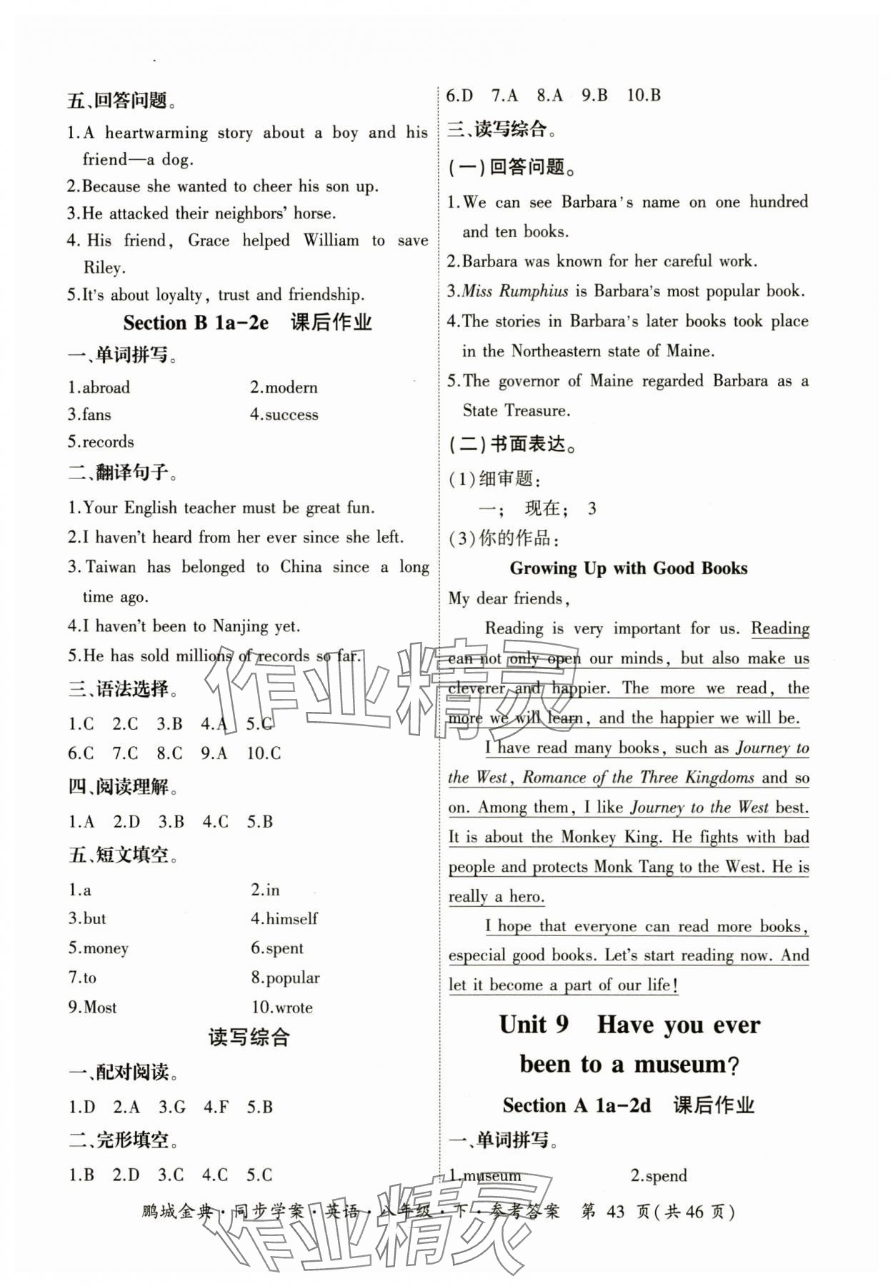 - 参考答案第43页