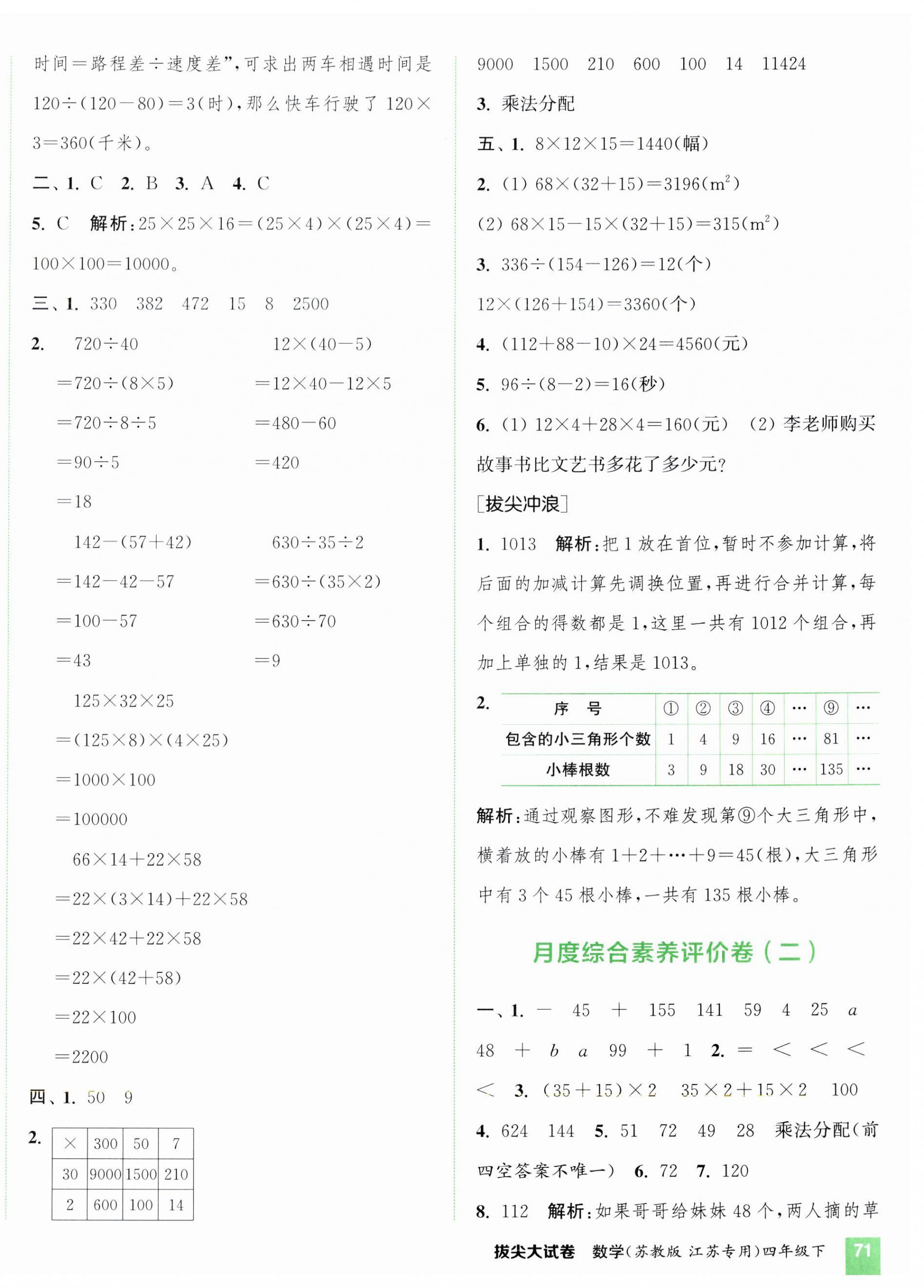 注:目前有些书本章节名称可能整理的还不是很完善,但都是按照顺序排列的,请同学们按照顺序仔细查找。练习册 2025年通城学典拔尖大试卷四年级数学下册苏教版江苏专版 答案主要是用来给同学们做完题方便对答案用的,请勿直接抄袭。