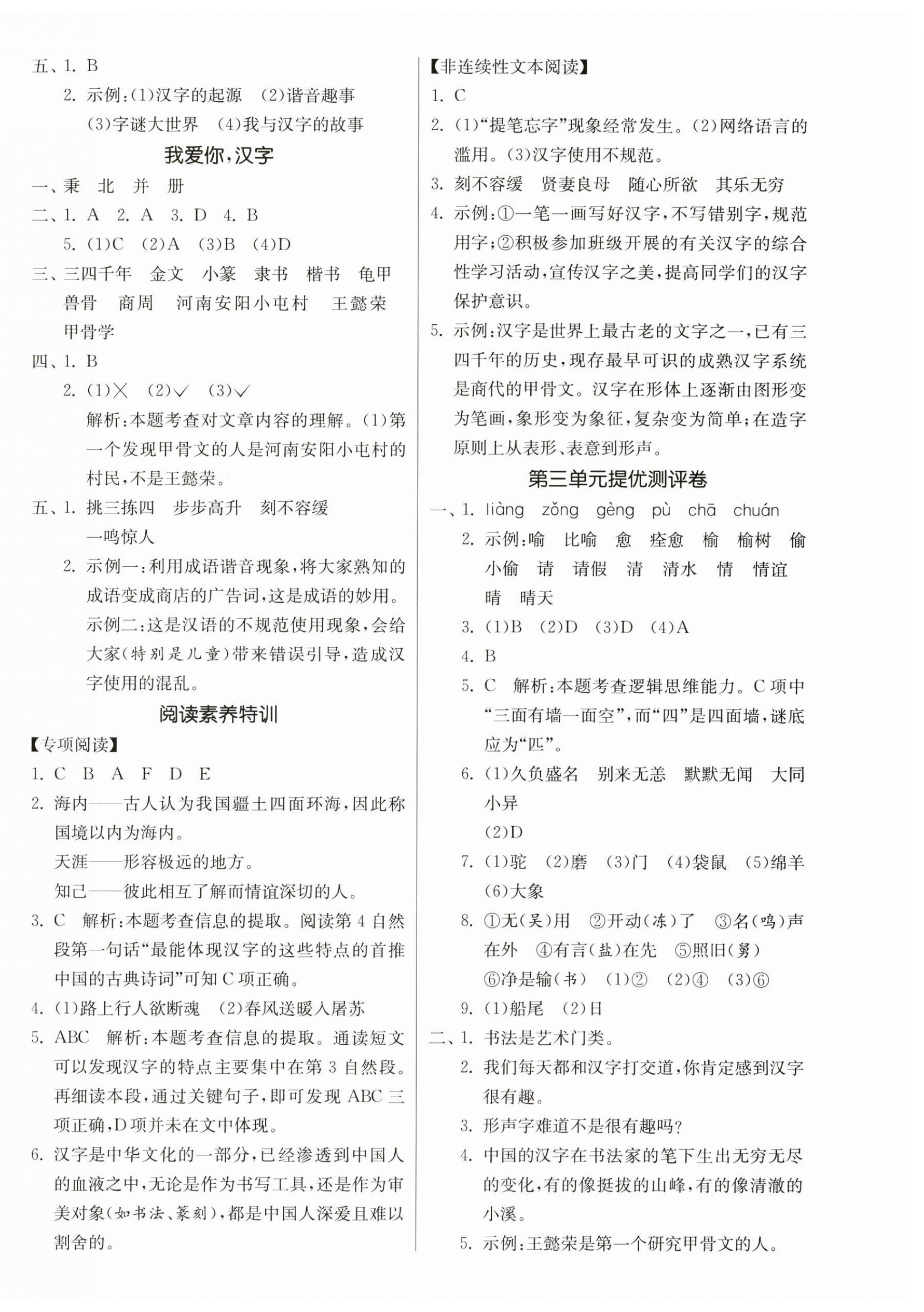 注:目前有些书本章节名称可能整理的还不是很完善,但都是按照顺序排列的,请同学们按照顺序仔细查找。练习册 2025年课时训练江苏人民出版社五年级语文下册人教版 答案主要是用来给同学们做完题方便对答案用的,请勿直接抄袭。