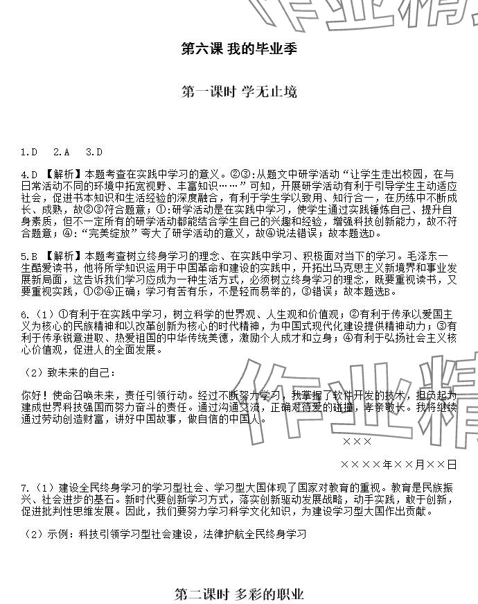 注:目前有些书本章节名称可能整理的还不是很完善,但都是按照顺序排列的,请同学们按照顺序仔细查找。练习册 2025年知识与能力训练九年级道德与法治下册人教版 答案主要是用来给同学们做完题方便对答案用的,请勿直接抄袭。