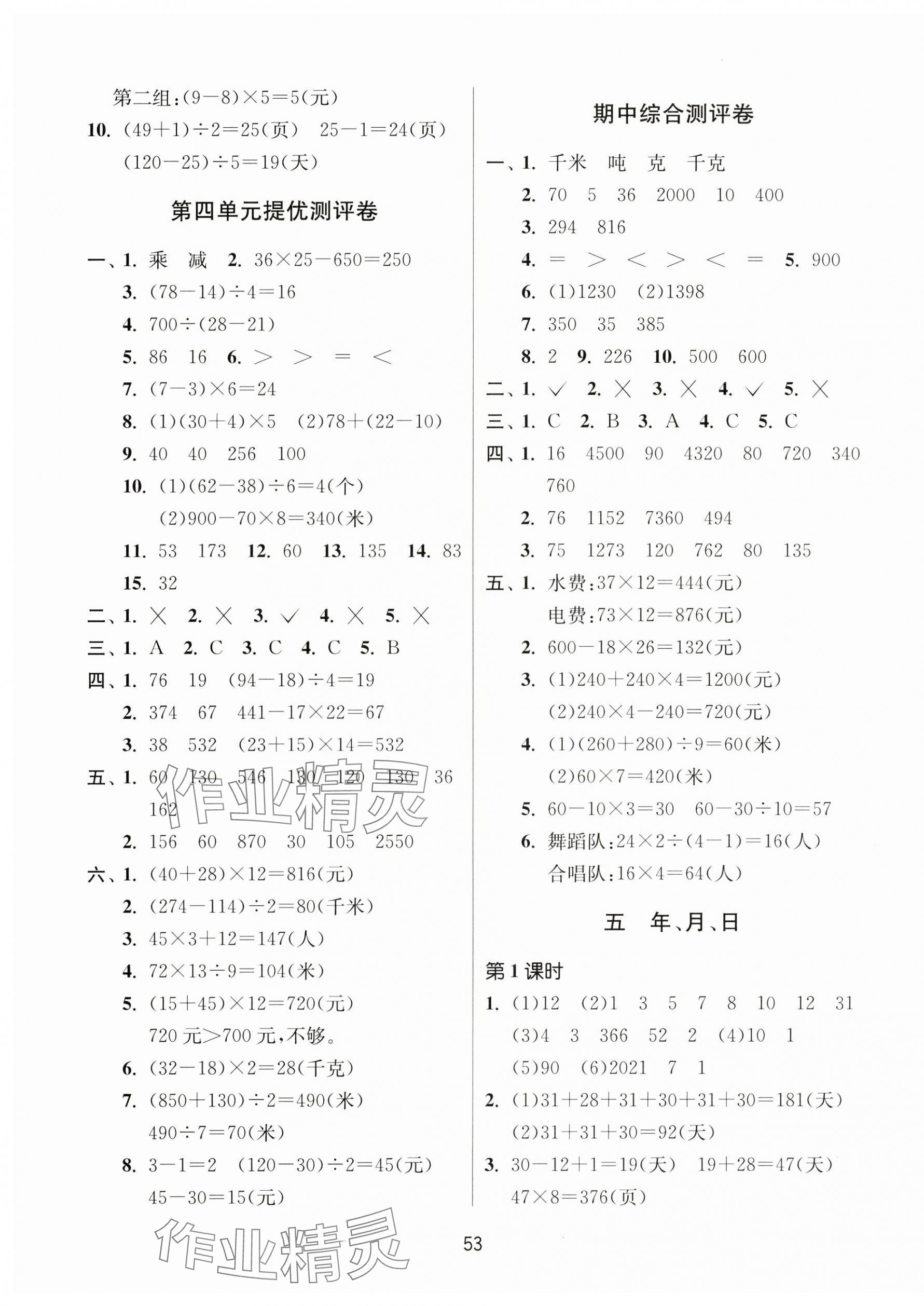 注:目前有些书本章节名称可能整理的还不是很完善,但都是按照顺序排列的,请同学们按照顺序仔细查找。练习册 2025年课时训练江苏人民出版社三年级数学下册苏教版 答案主要是用来给同学们做完题方便对答案用的,请勿直接抄袭。