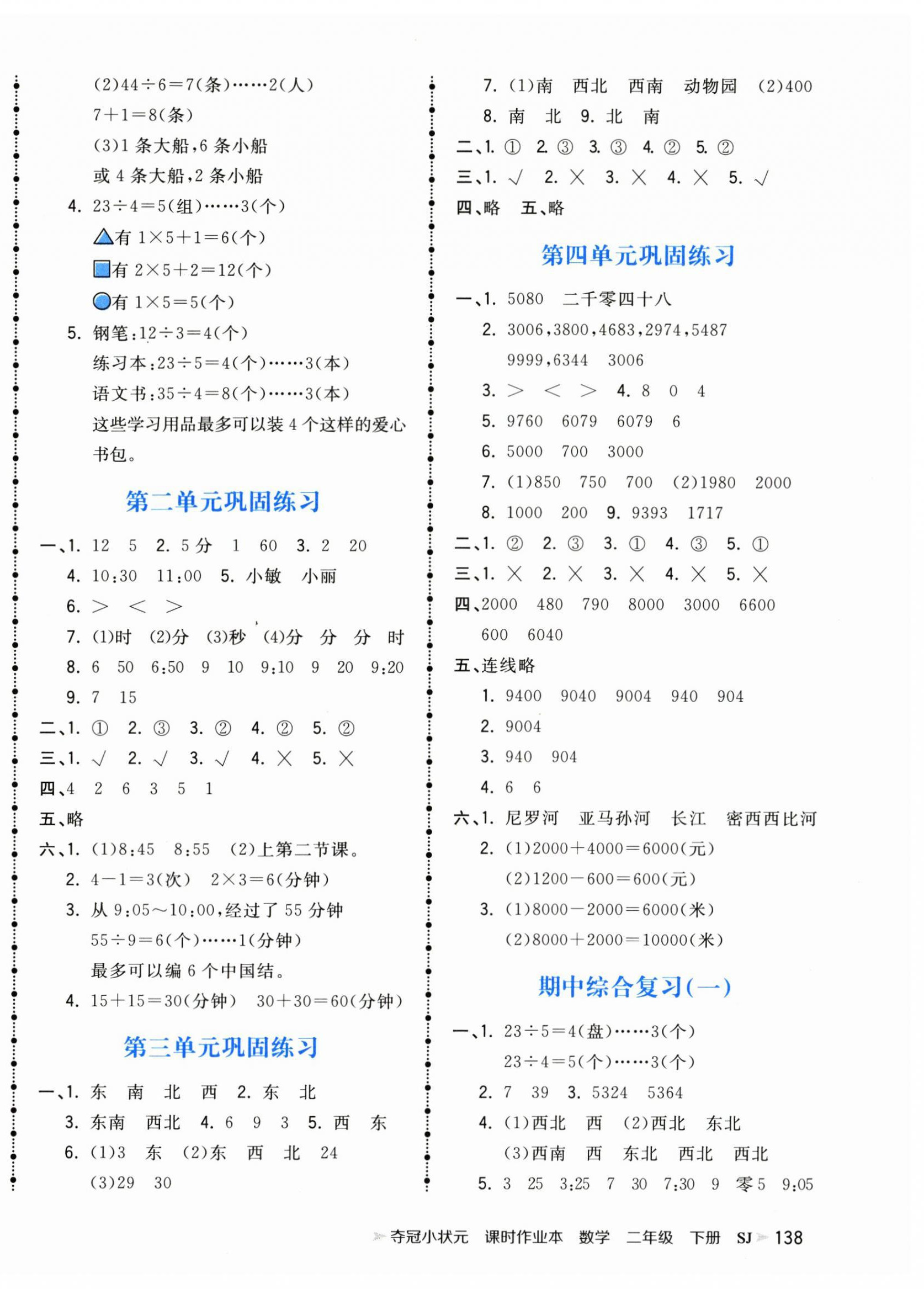 注:目前有些书本章节名称可能整理的还不是很完善,但都是按照顺序排列的,请同学们按照顺序仔细查找。练习册 2025年夺冠小状元课时作业本二年级数学下册苏教版 答案主要是用来给同学们做完题方便对答案用的,请勿直接抄袭。