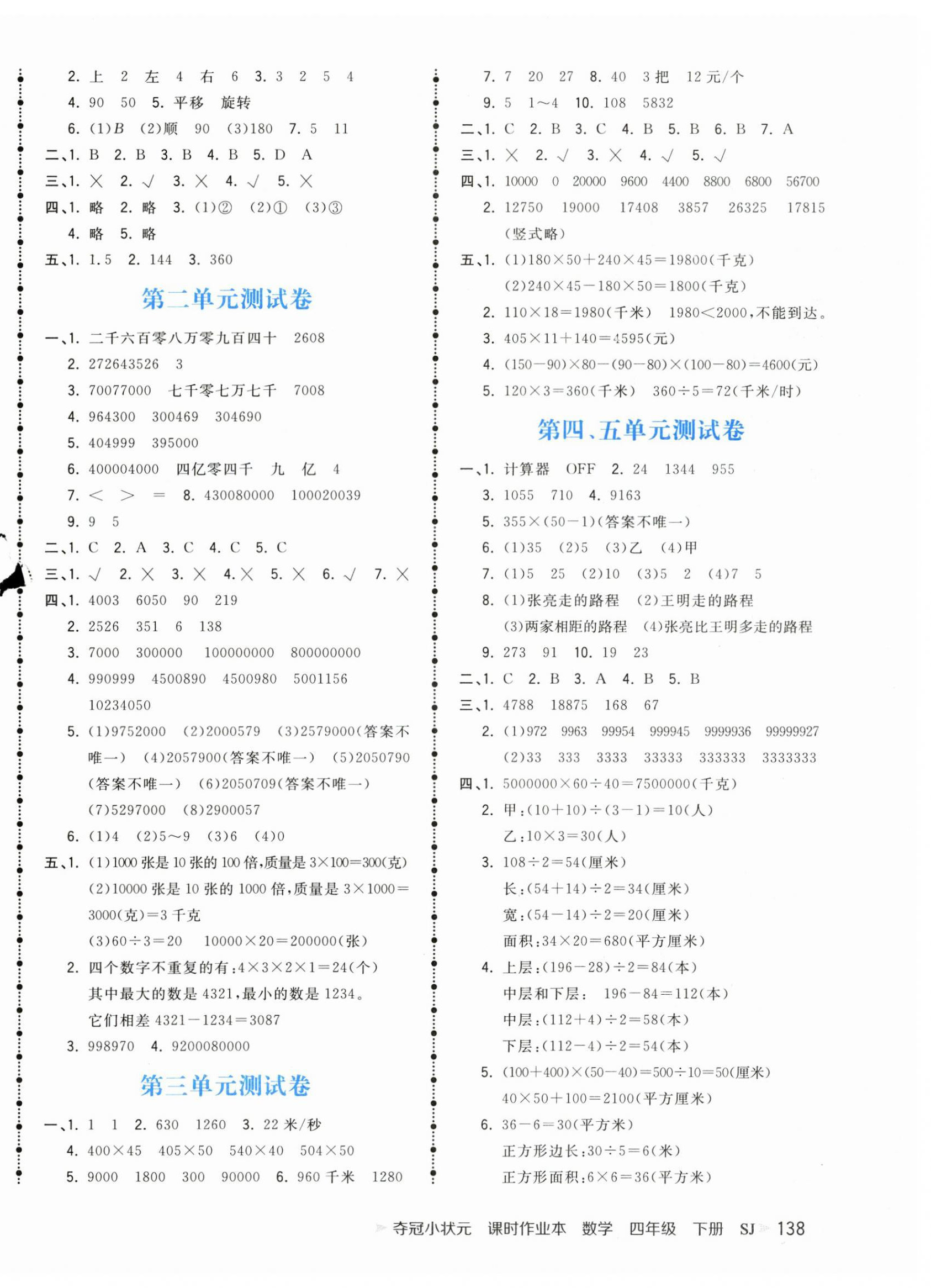 注:目前有些书本章节名称可能整理的还不是很完善,但都是按照顺序排列的,请同学们按照顺序仔细查找。练习册 2025年夺冠小状元课时作业本四年级数学下册苏教版 答案主要是用来给同学们做完题方便对答案用的,请勿直接抄袭。
