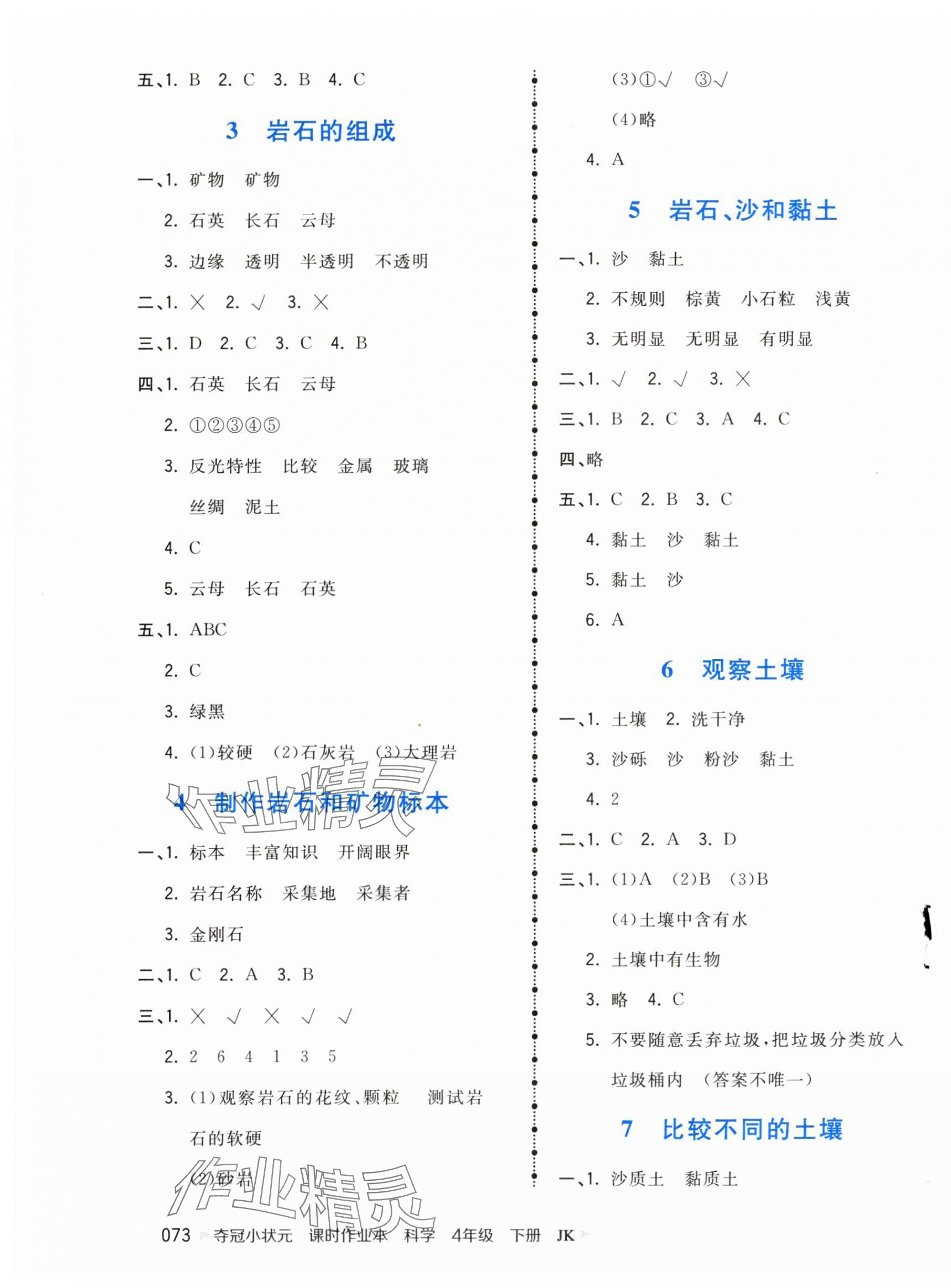 注:目前有些书本章节名称可能整理的还不是很完善,但都是按照顺序排列的,请同学们按照顺序仔细查找。练习册 2025年夺冠小状元课时作业本四年级科学下册教科版 答案主要是用来给同学们做完题方便对答案用的,请勿直接抄袭。