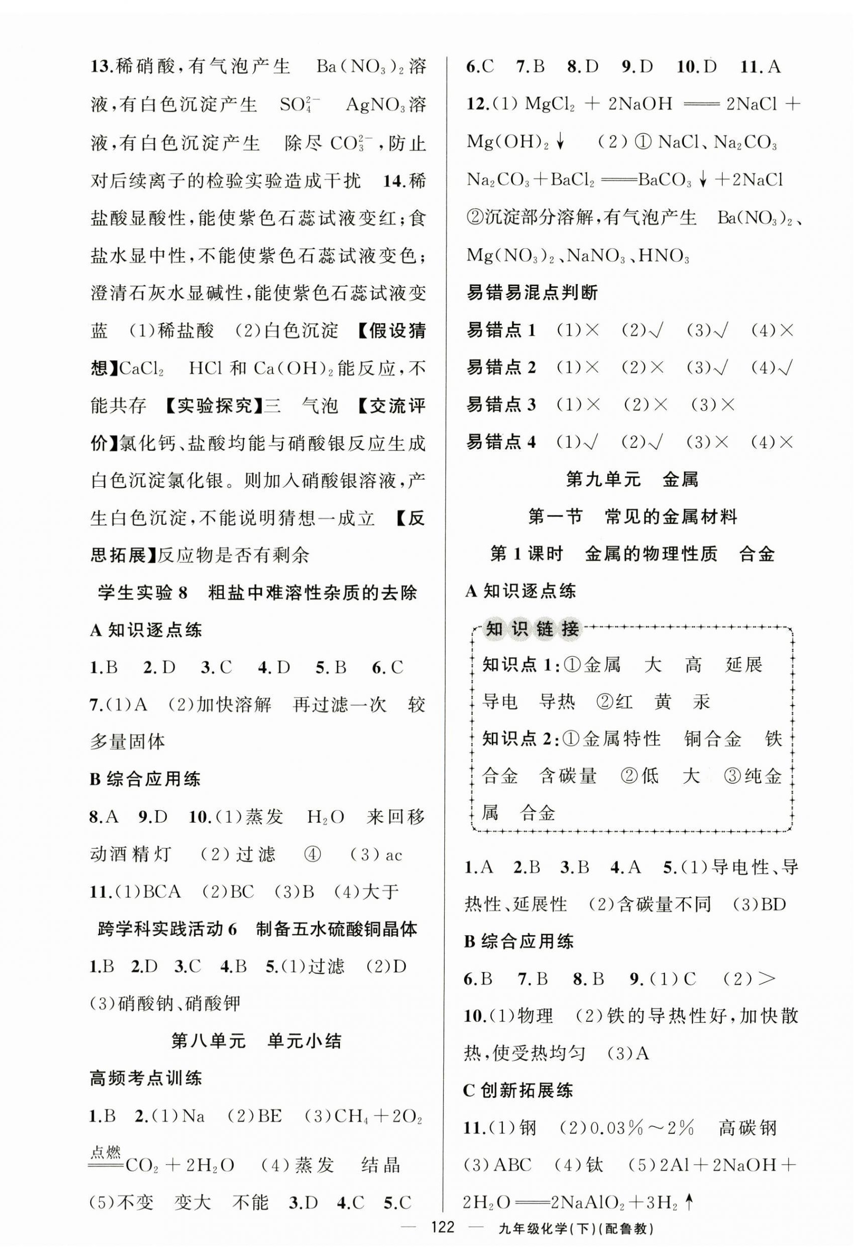 注:目前有些书本章节名称可能整理的还不是很完善,但都是按照顺序排列的,请同学们按照顺序仔细查找。练习册 2025年黄冈金牌之路练闯考九年级化学下册鲁教版 答案主要是用来给同学们做完题方便对答案用的,请勿直接抄袭。