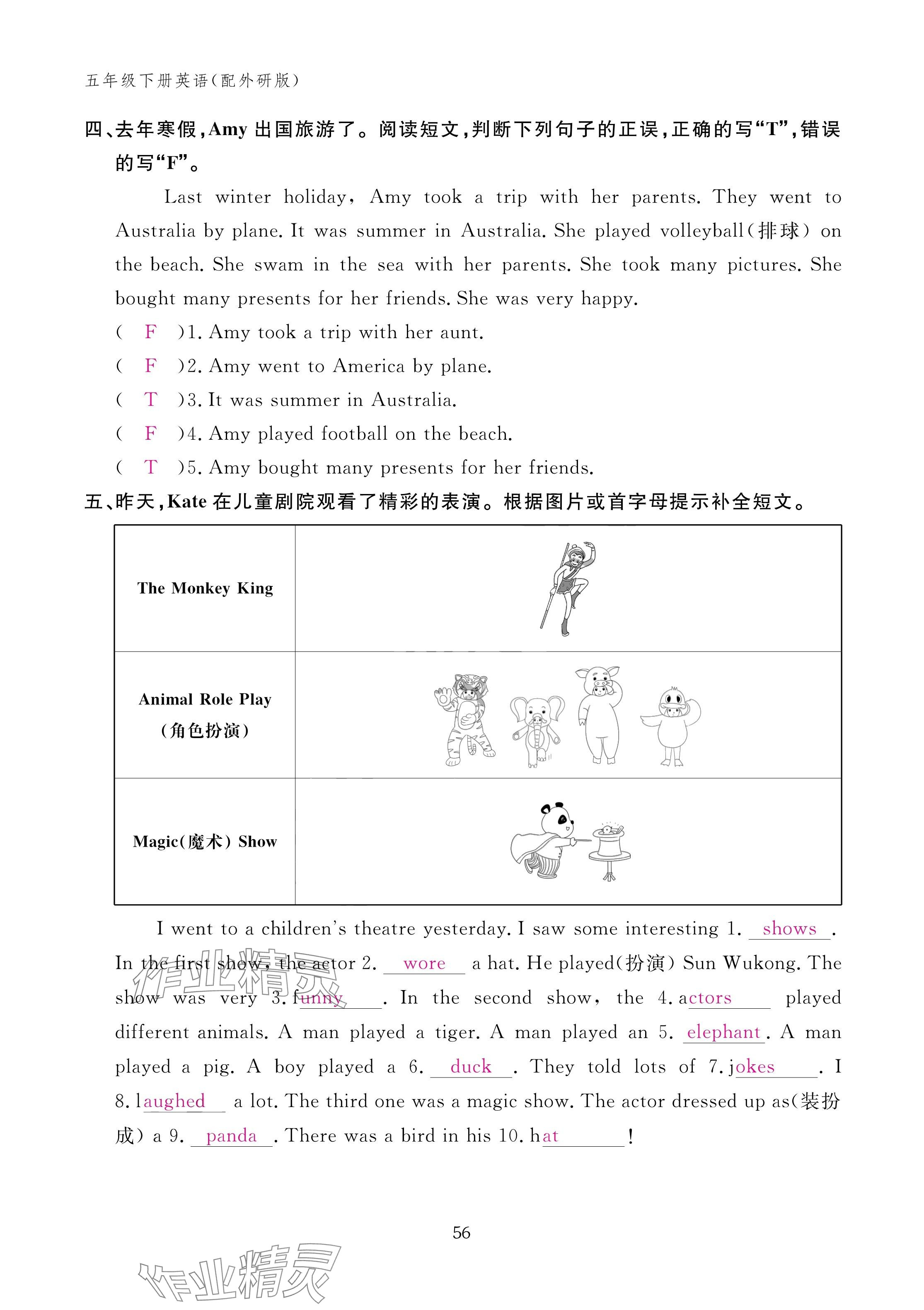 注:目前有些书本章节名称可能整理的还不是很完善,但都是按照顺序排列的,请同学们按照顺序仔细查找。练习册 2025年作业本江西教育出版社五年级英语下册外研版 答案主要是用来给同学们做完题方便对答案用的,请勿直接抄袭。