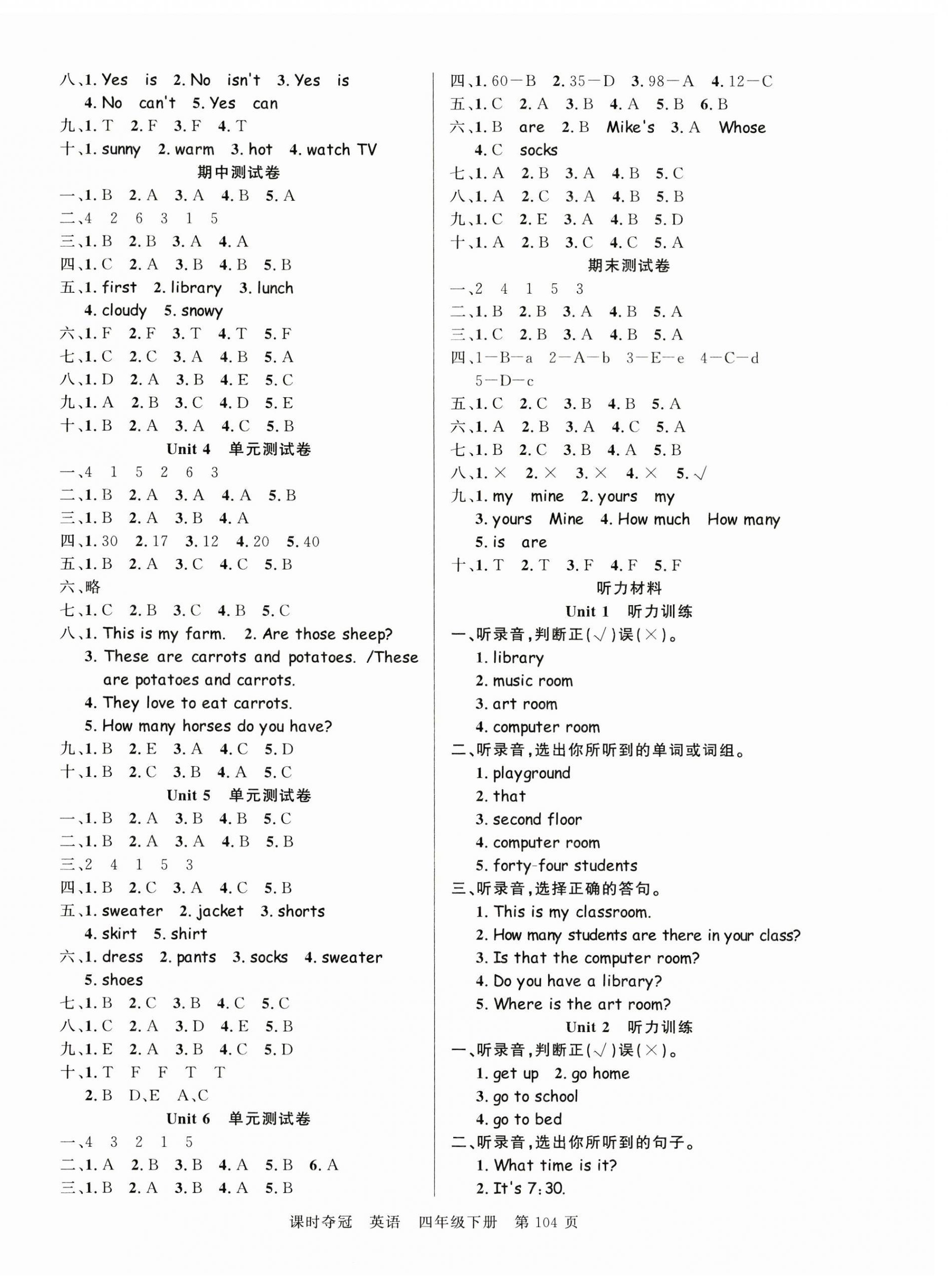注:目前有些书本章节名称可能整理的还不是很完善,但都是按照顺序排列的,请同学们按照顺序仔细查找。练习册 2025年课时夺冠四年级英语下册人教版 答案主要是用来给同学们做完题方便对答案用的,请勿直接抄袭。